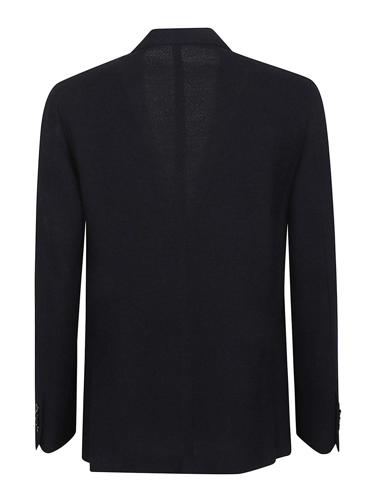 Lardini wool jacket, two-button closure, notched lapels, two patch pockets, regular fit. Featuring a branded pin on the lapel.