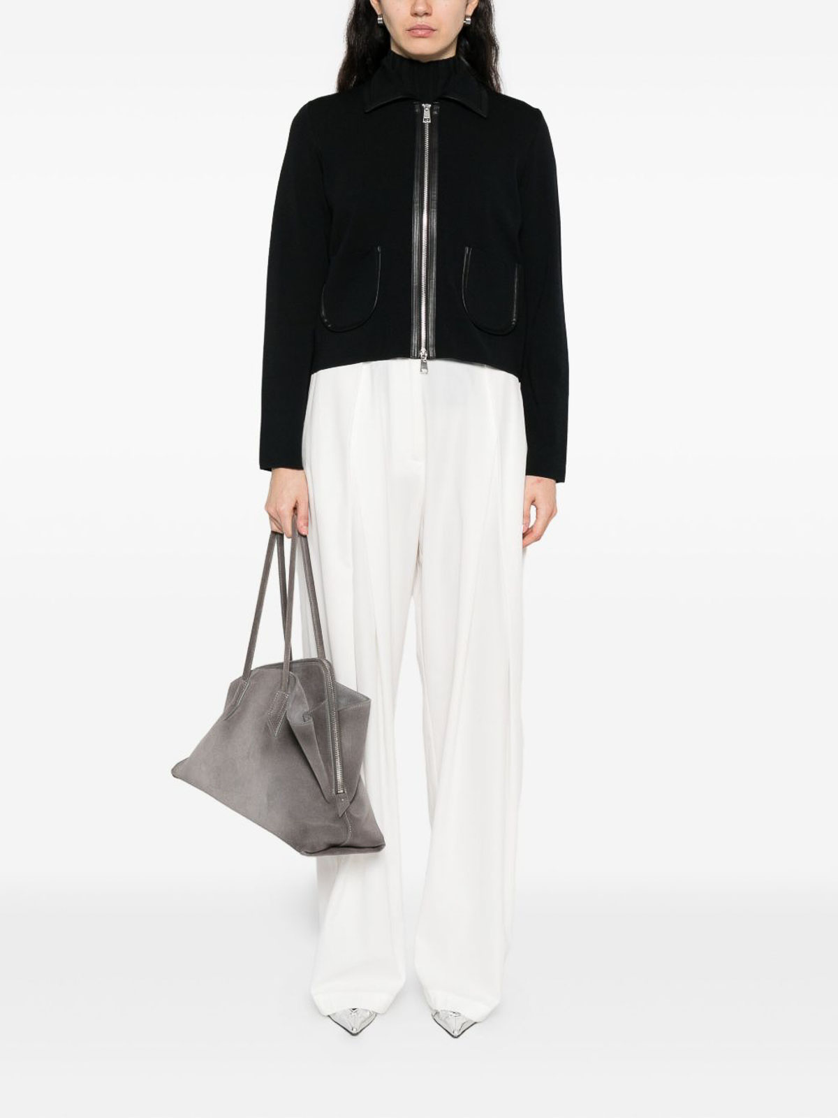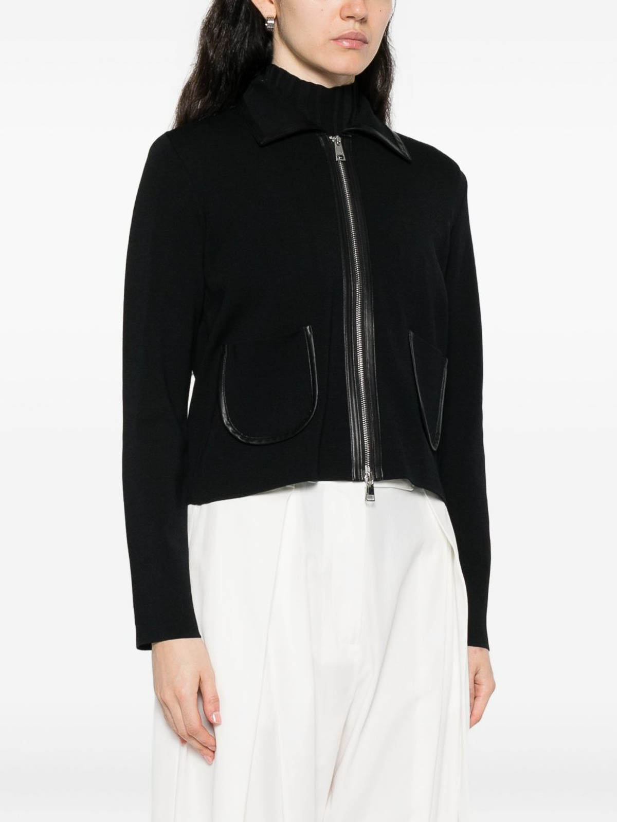 Black trim zip patch pockets cropped length
