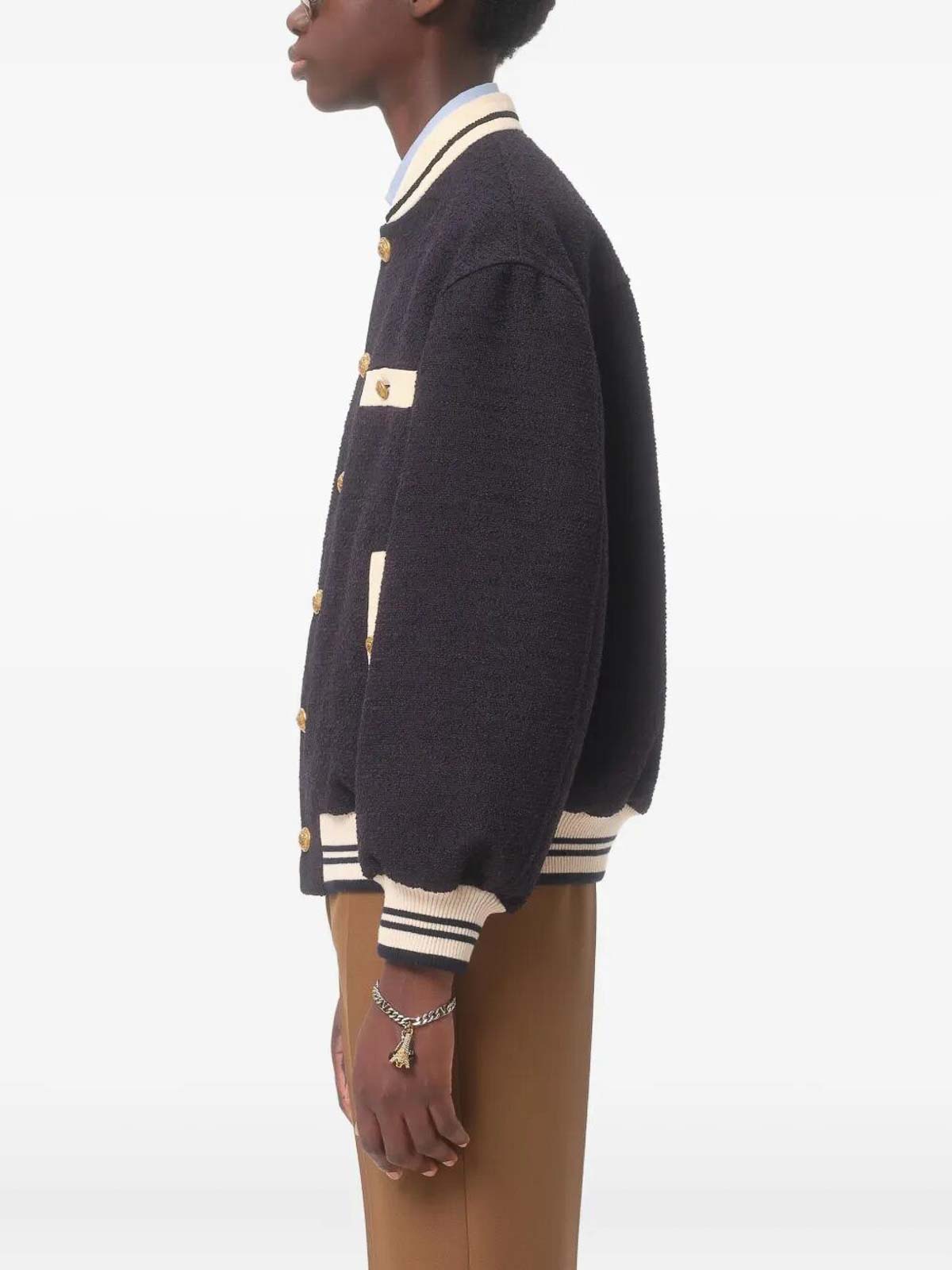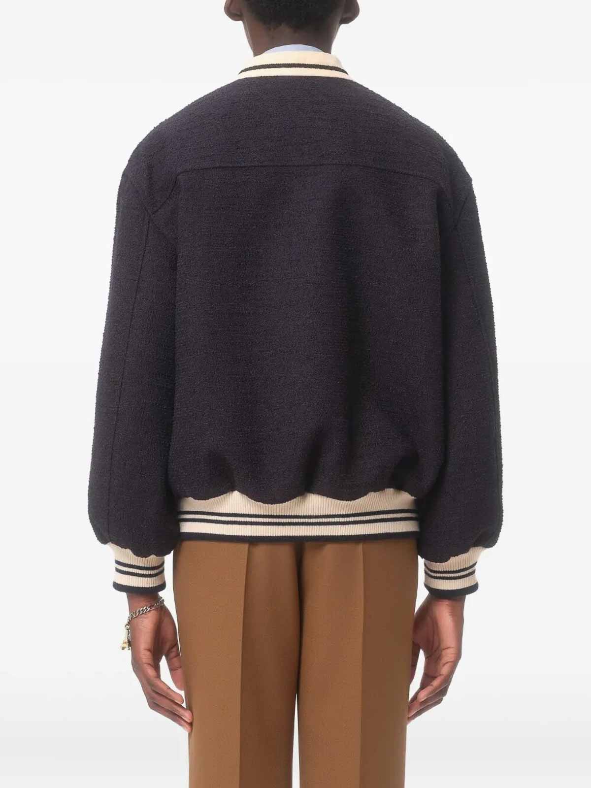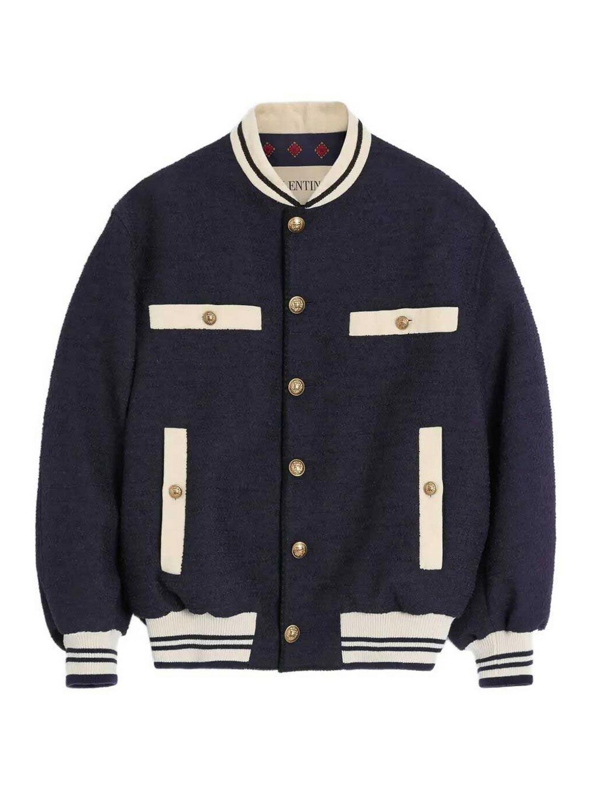 Bomber jacket with botton t flap pockets and ribbed cuffs and hem