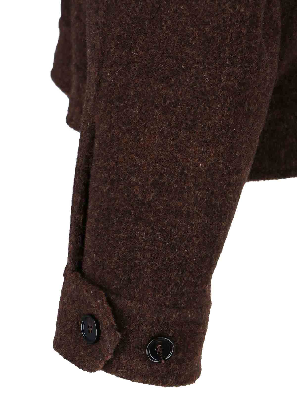 Burberry foxhill scarf jacket, in brown wool blend, removable and adjustable checked scarf, classic collar, button closure, two side button pockets, buttoned cuffs, adjustable buttons on the waist, straight hem.