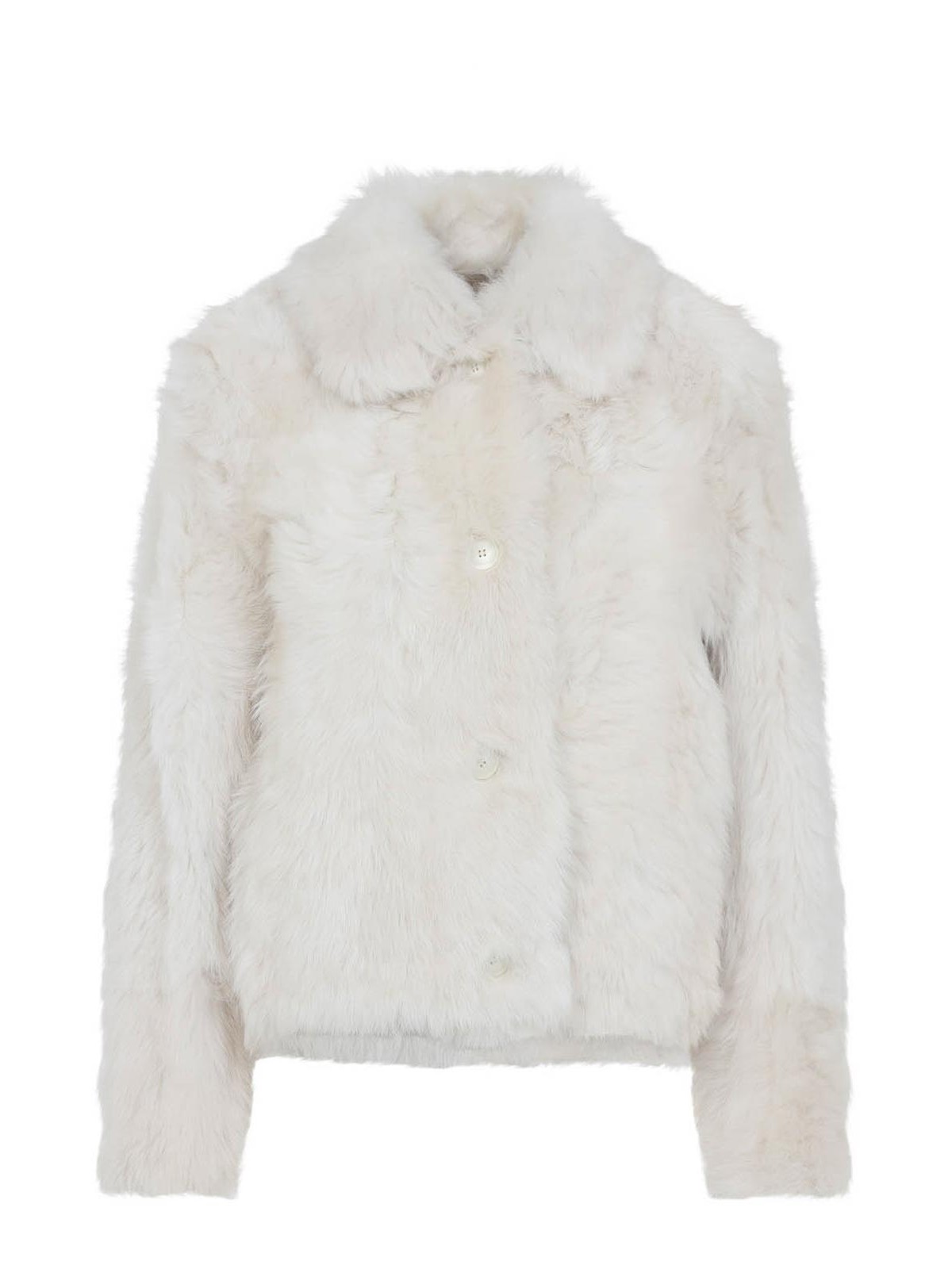 Yves salomon meringue white jacket pure merngue white jacket pointed collar buttoned side pockets long sleeves straight hem