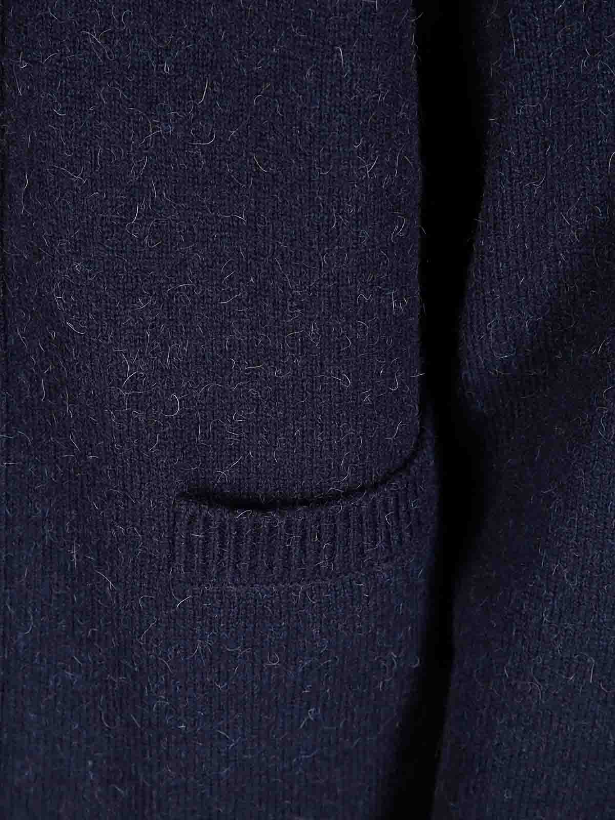 Double sweater in soft cashmere and wool, vest with stitched cardigan, round collar, side pockets.