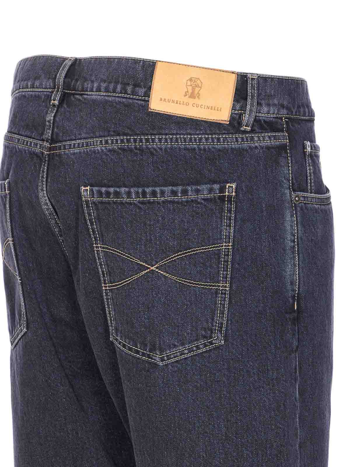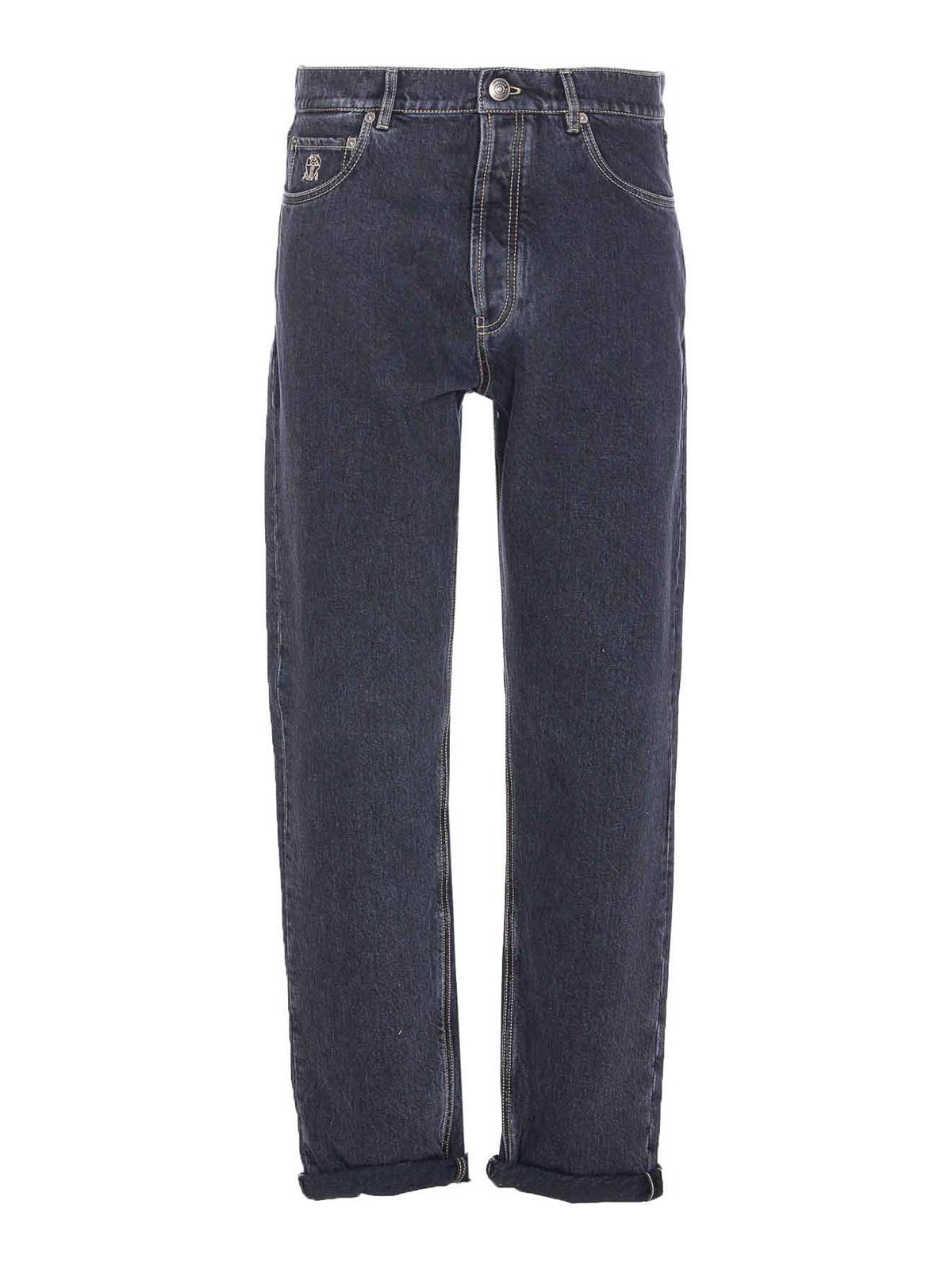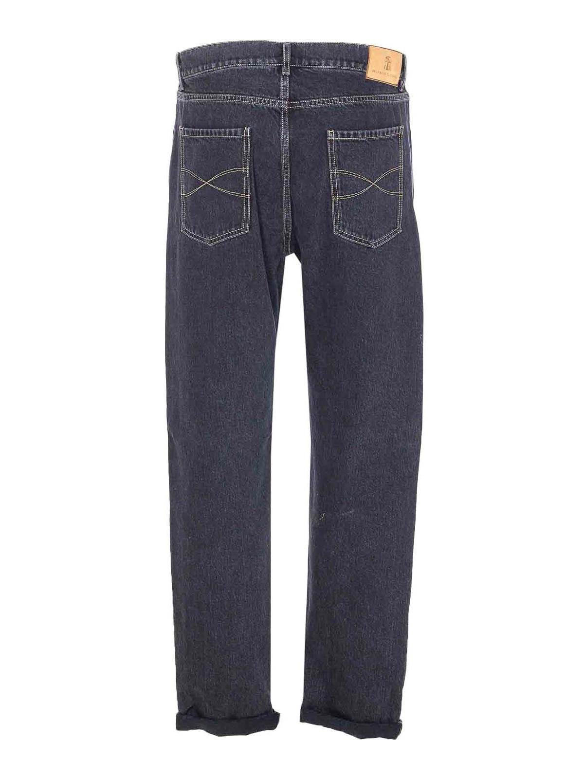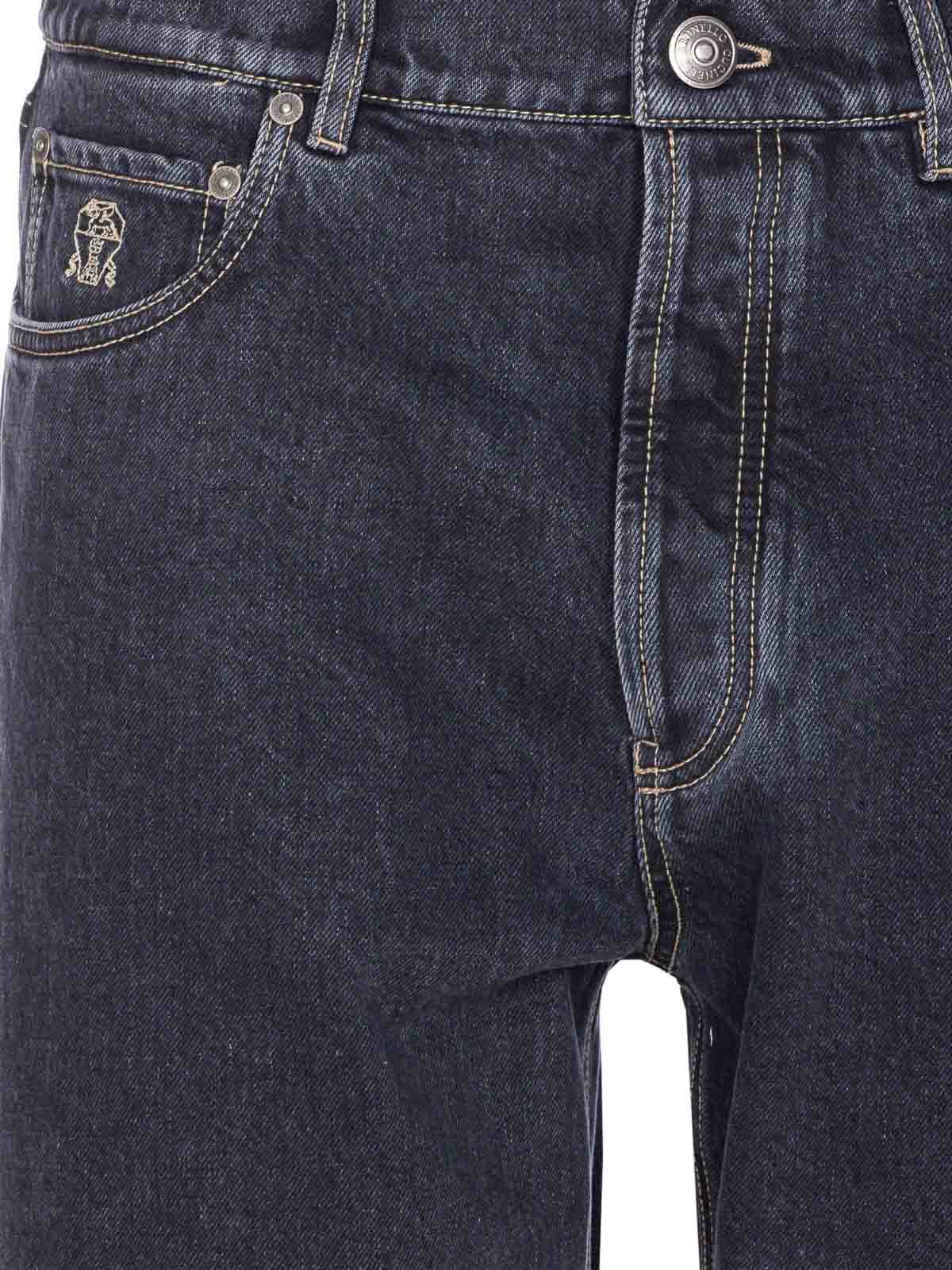 Brunello cucinelli blue jeans buttons on the patch logo on the back pockets embroidered logo on the cuffs at bottom