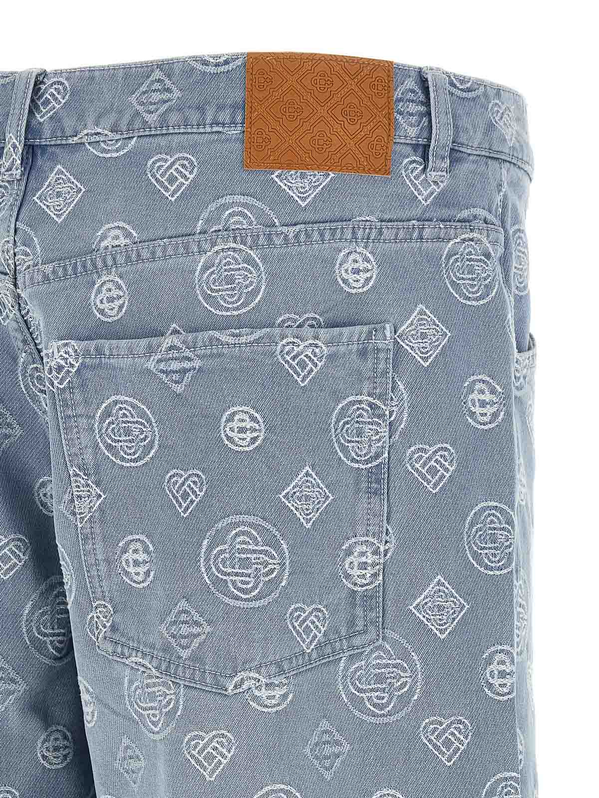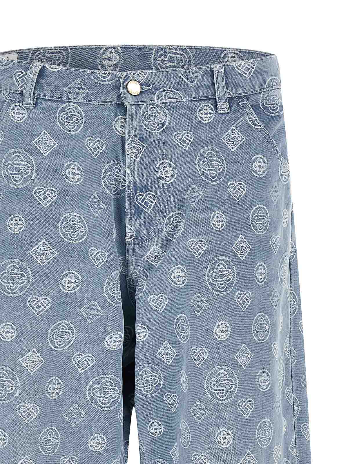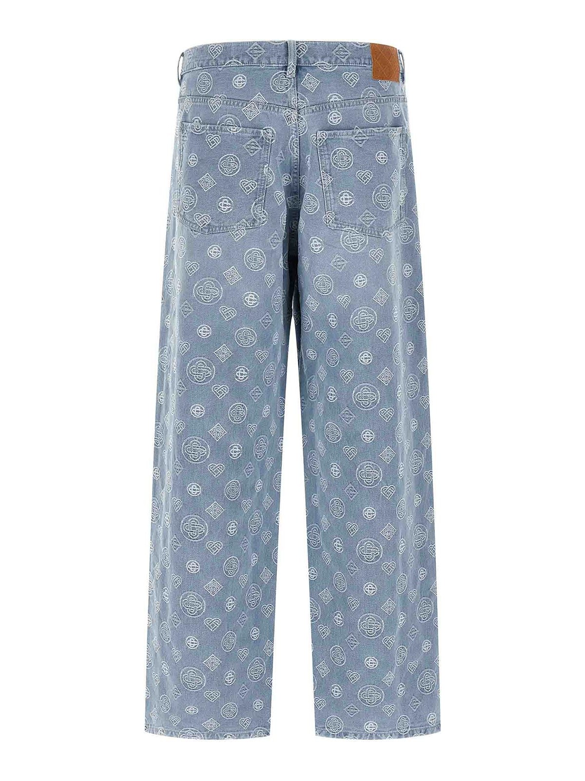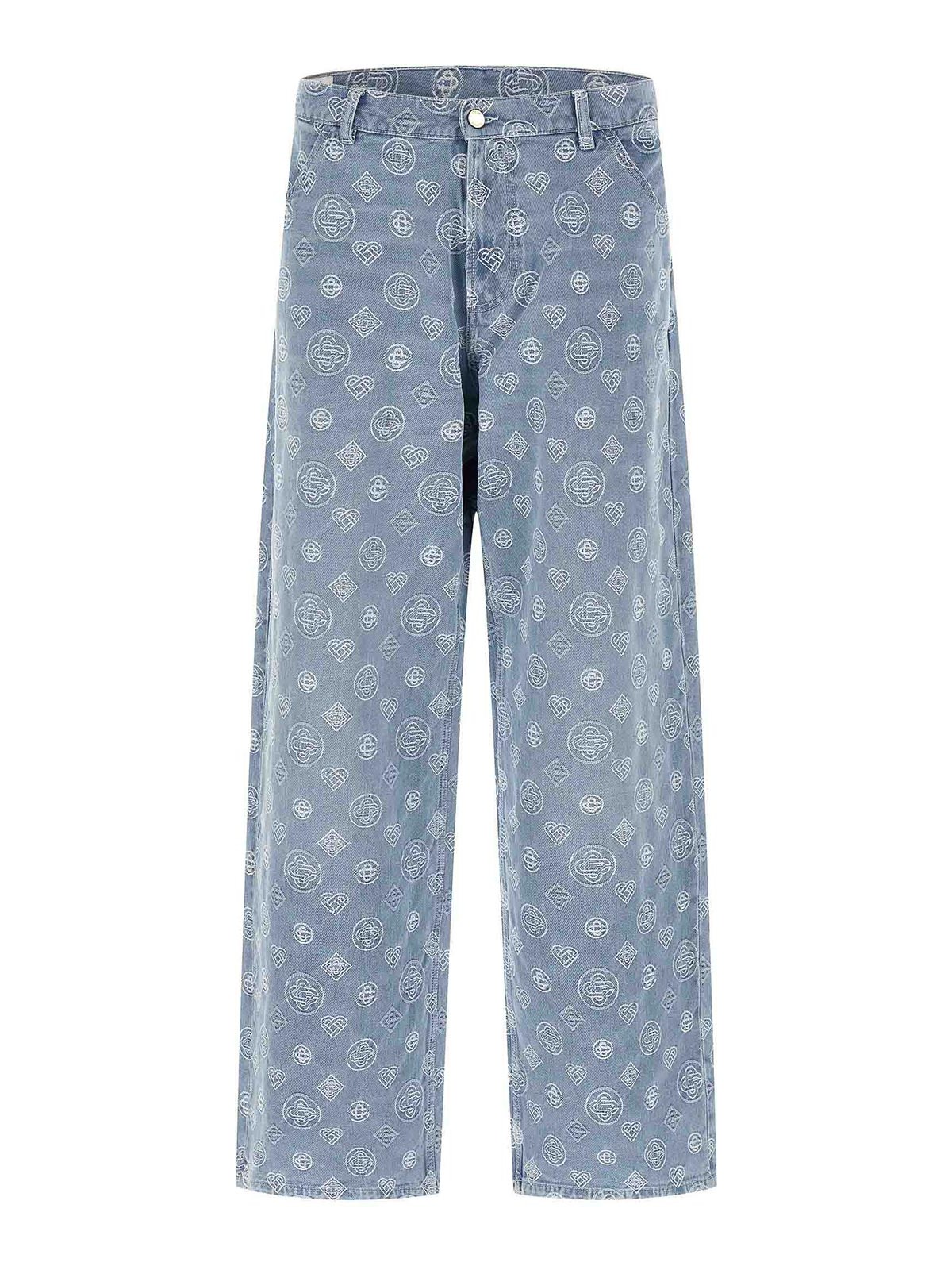 Cotton denim jeans with all-over jacquard 'honeydew' logo, wide and straight leg, front zip and button closure, pockets, and back leather logo tag.