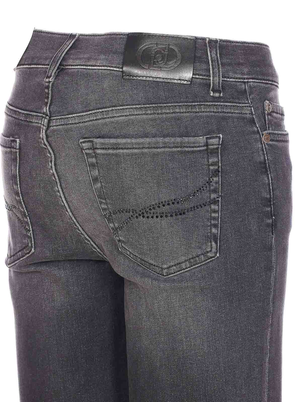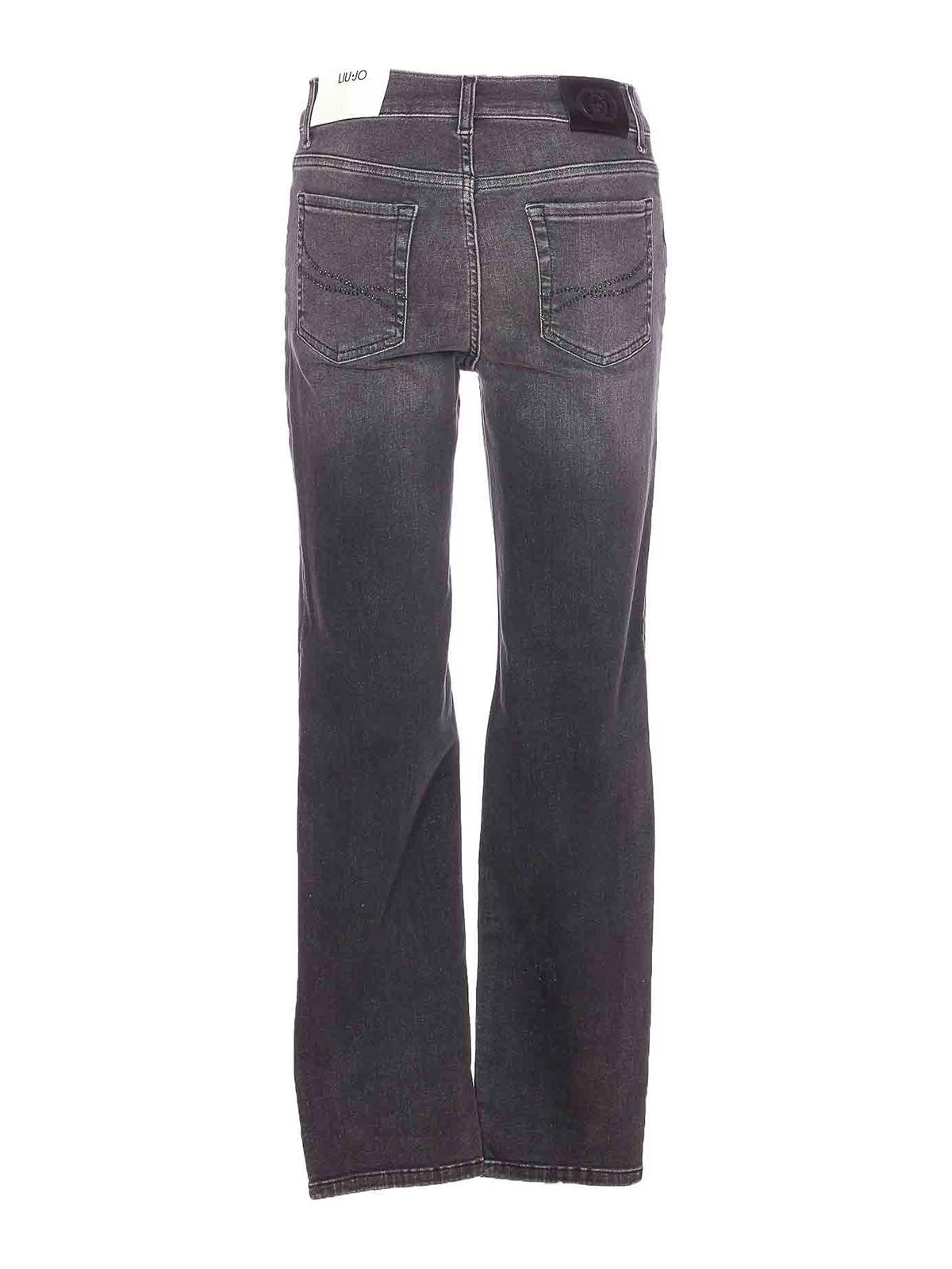 Liu jo black jeans with frontal zip and button pockets patch logo on the back