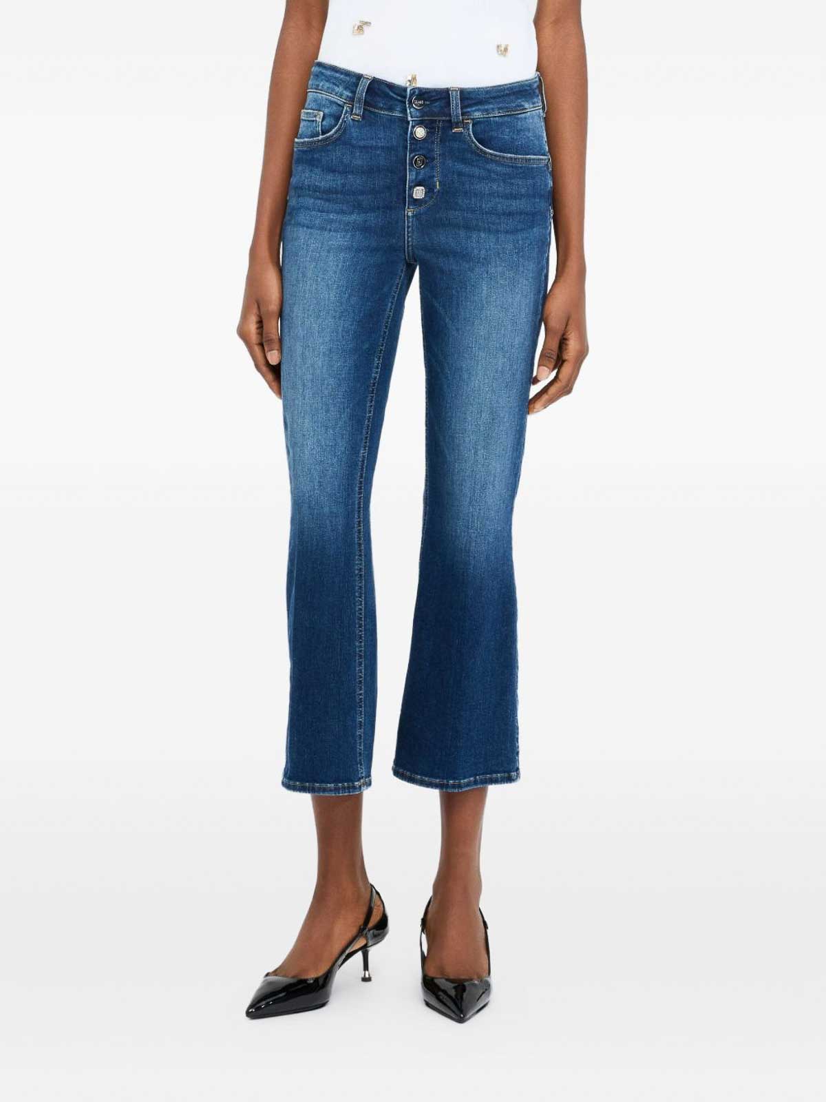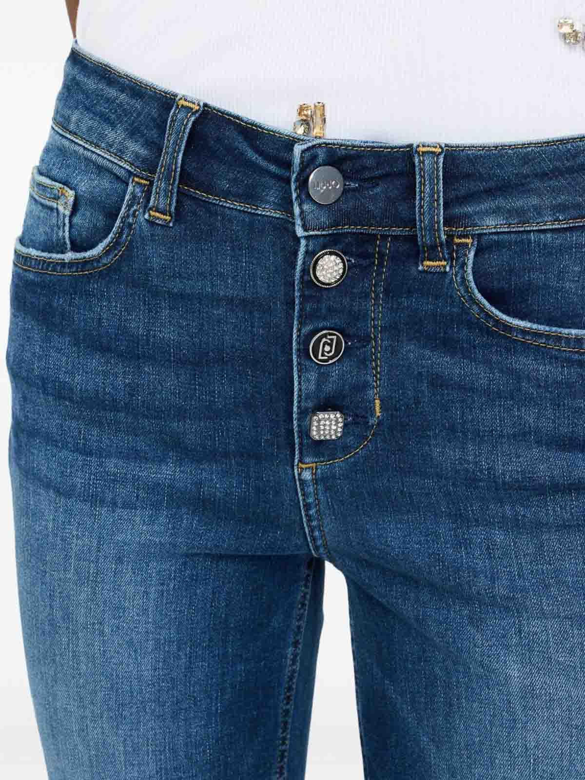 Blue five-pocket design embellished buttons stone bottom-up cuts