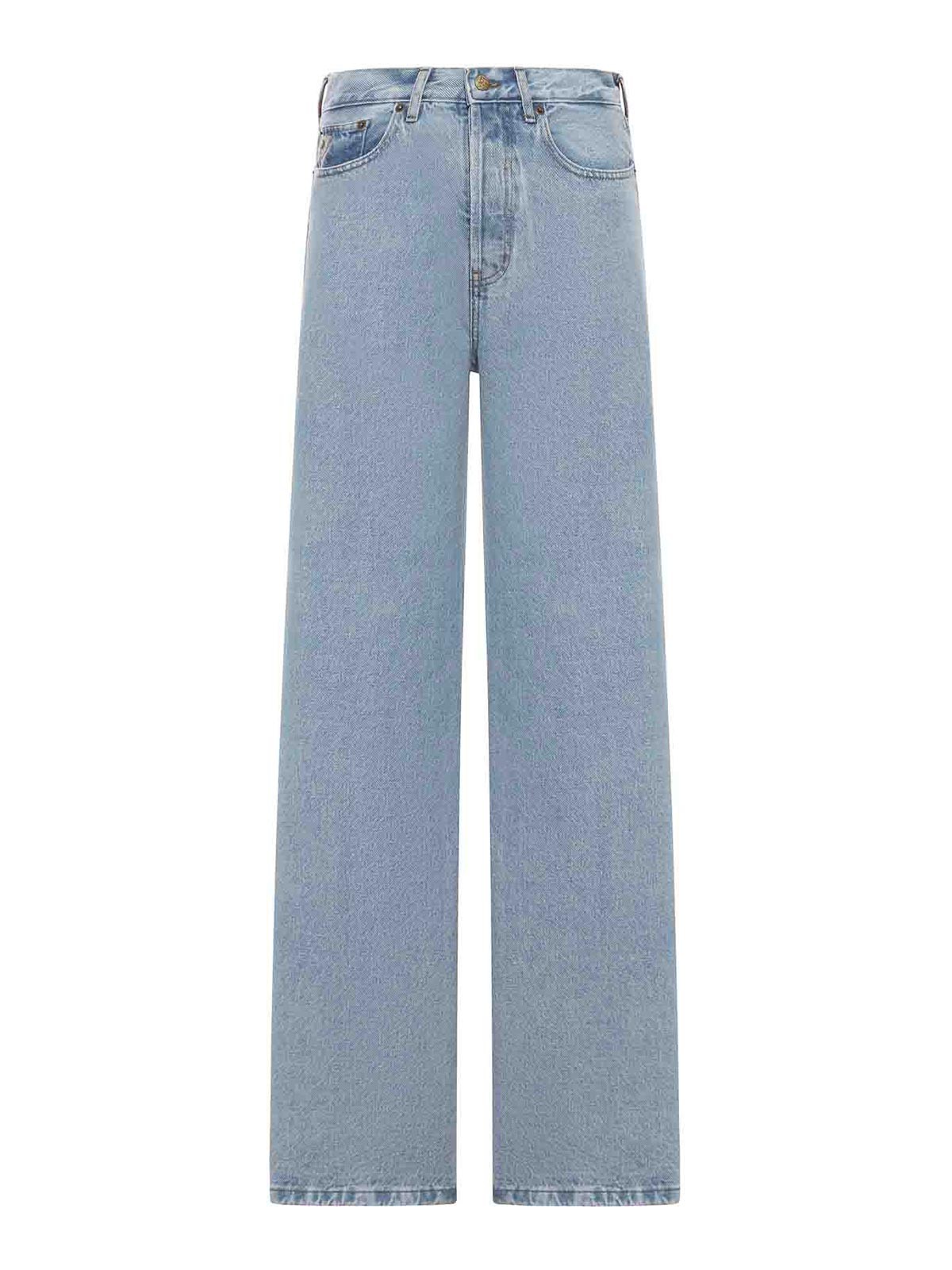 wide leg, low rise, fly and button closure, five pockets, belt loops, fits true to size for a low rise and skater leg with a drop crotch, size down for a higher rise and a tighter fit at the hips, model is 176 cm tall and wears a size 27/34, color: bleach