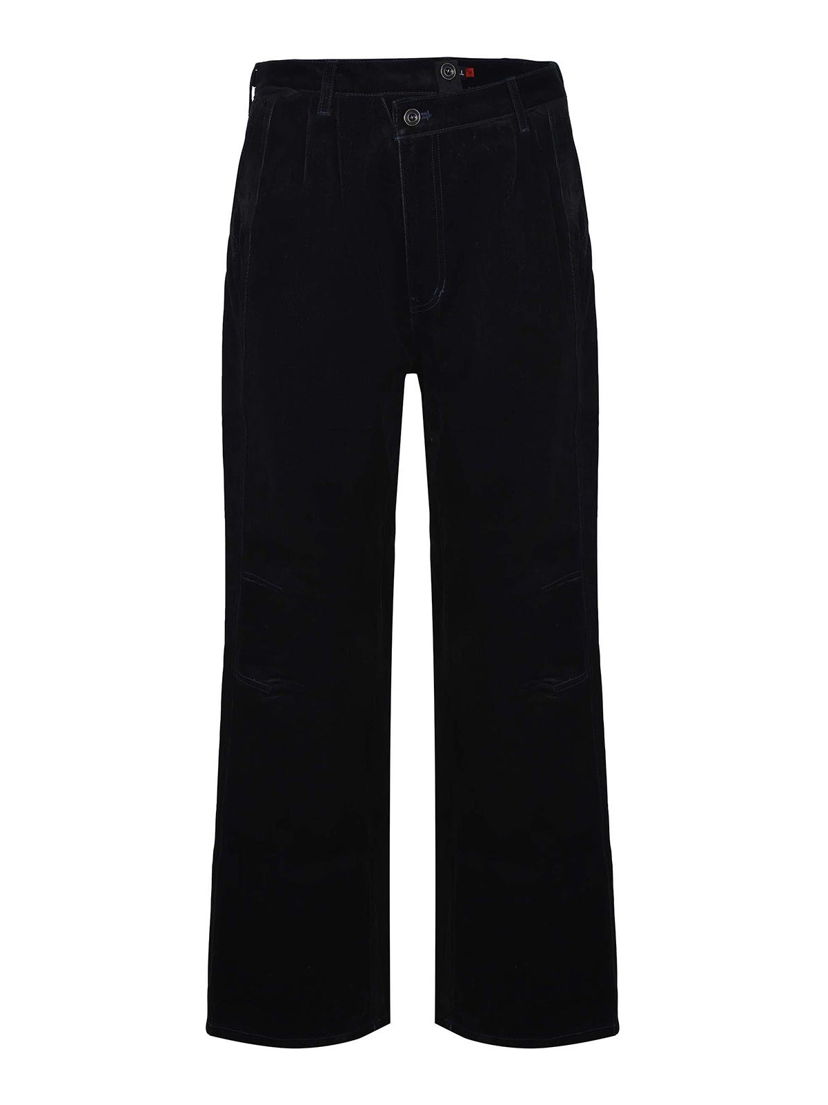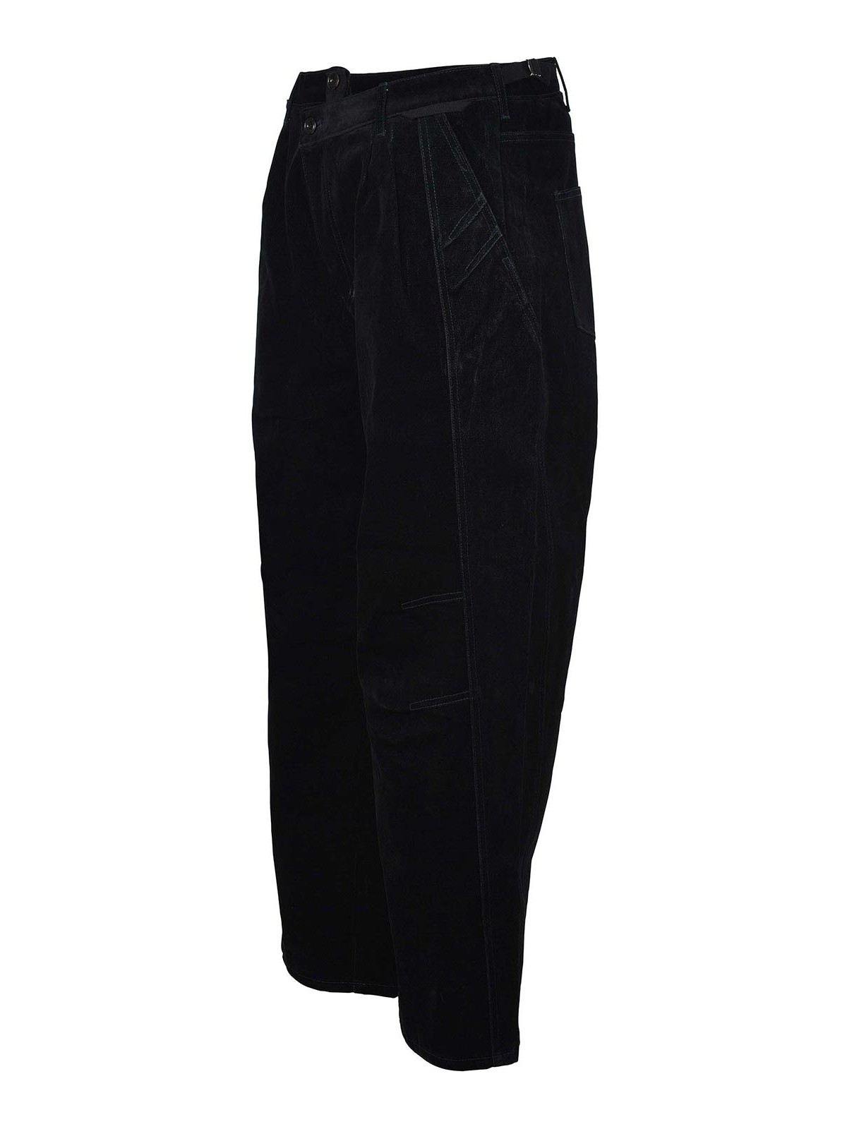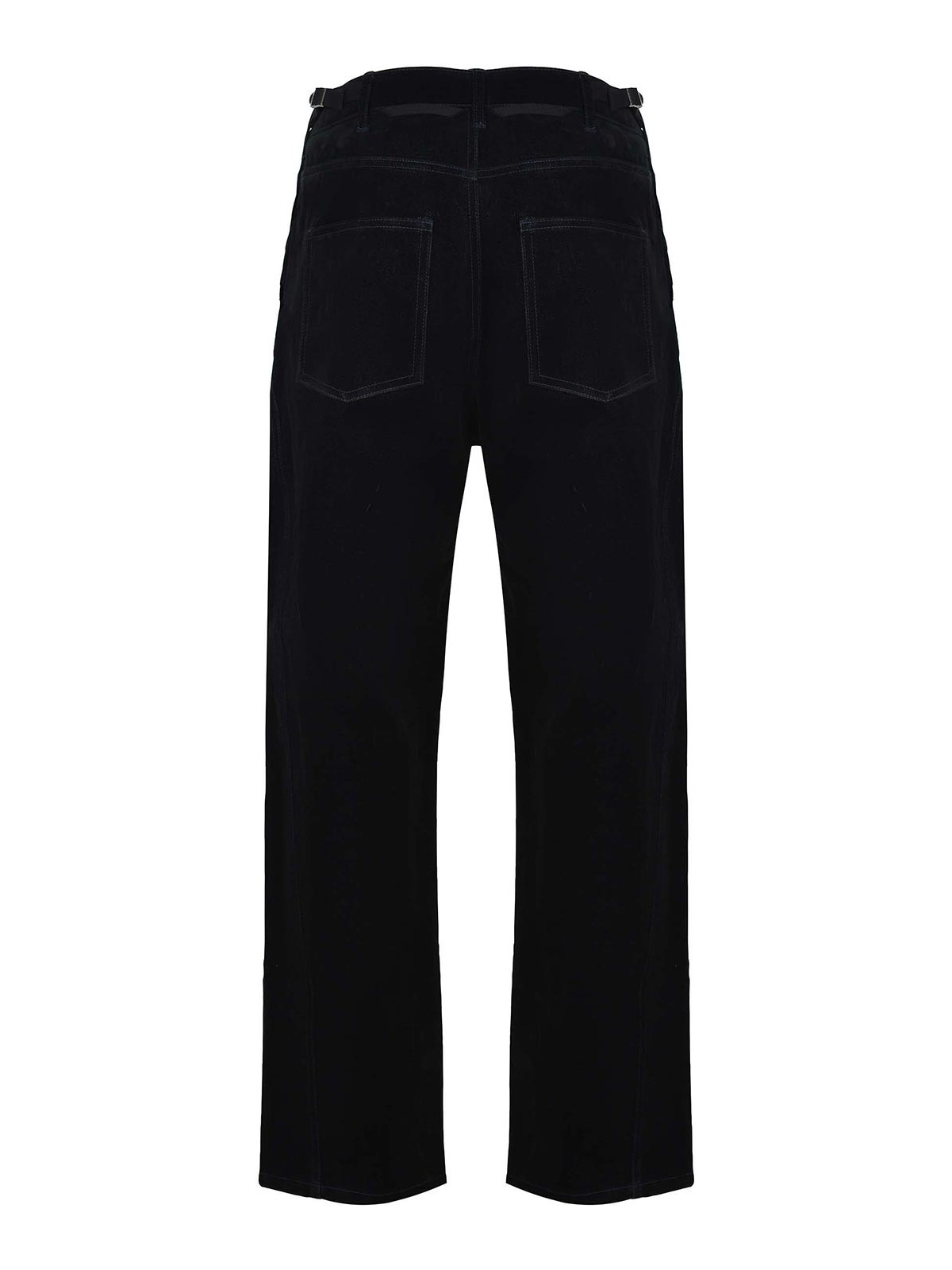 Andersson bell jeans made of black cotton blend. velvet effect. contrasting stitching. asymmetrical closure with button and zipper. side pockets. belt loops. adjustable drawstring waist. back pockets. 59% polyester, 41% cotton