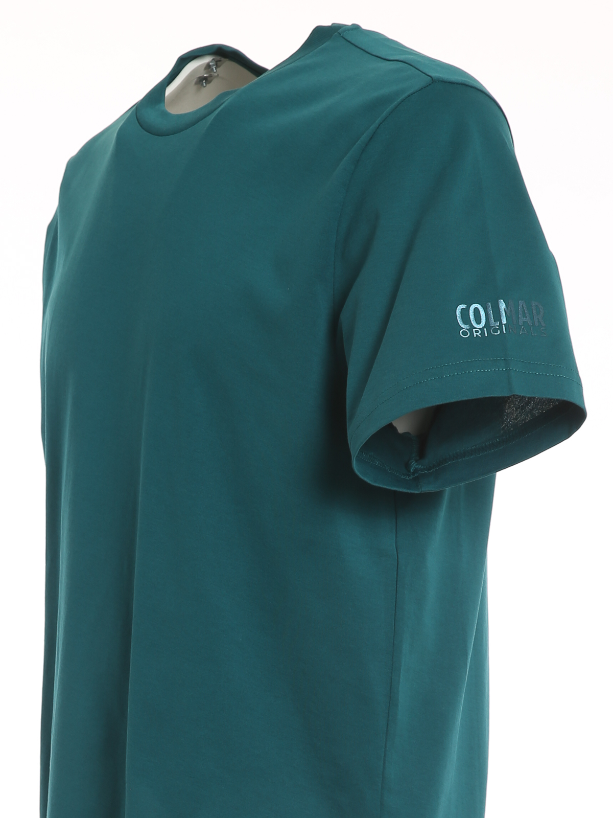 Jersey T-shirt featuring printed logo lettering at sleeve.