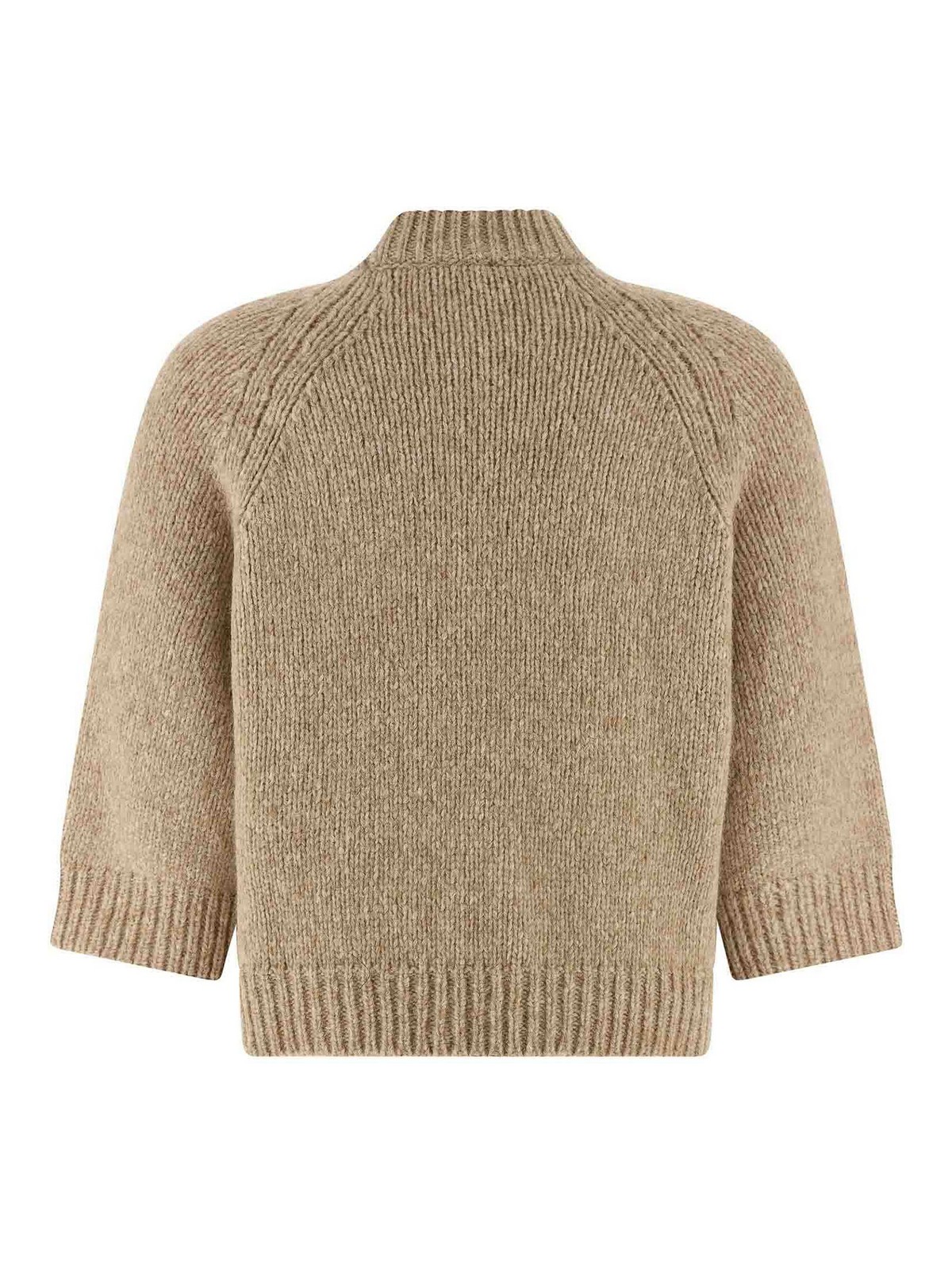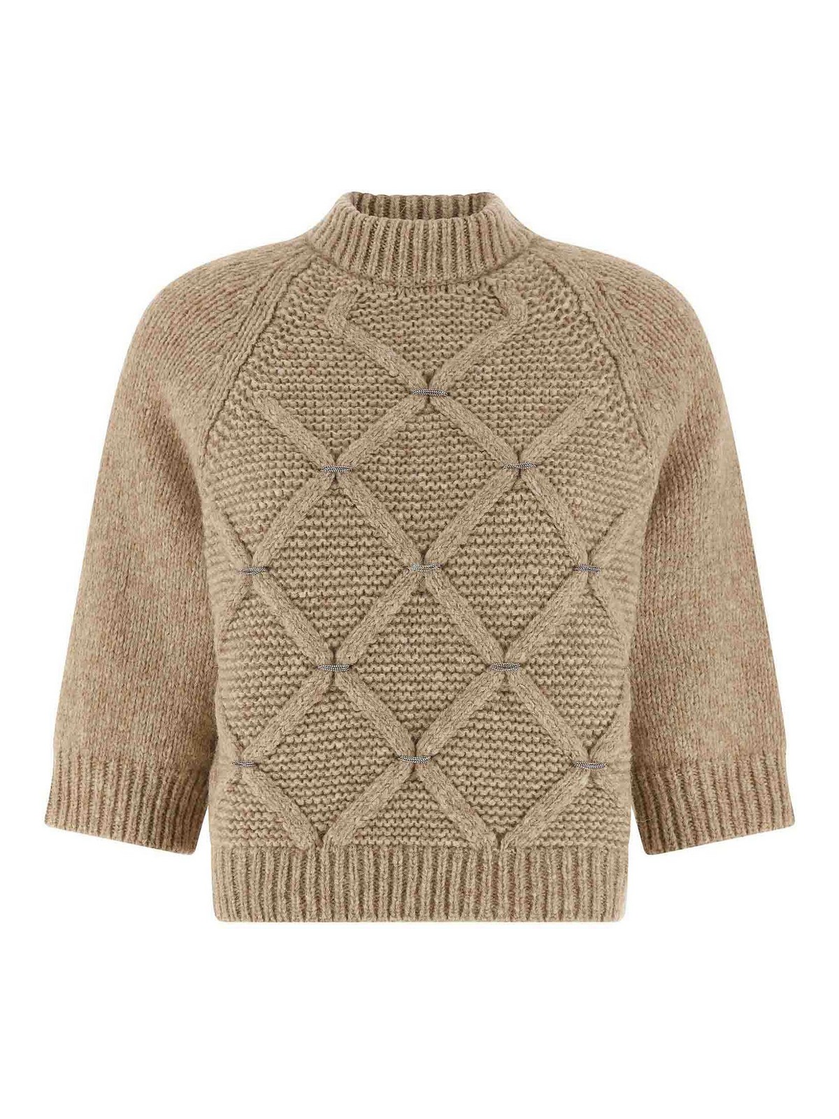 Alpaca and virgin wool blend knitted sweater with diamonds and front jewel details, crew neck, 3/4 cuffed sleeves.