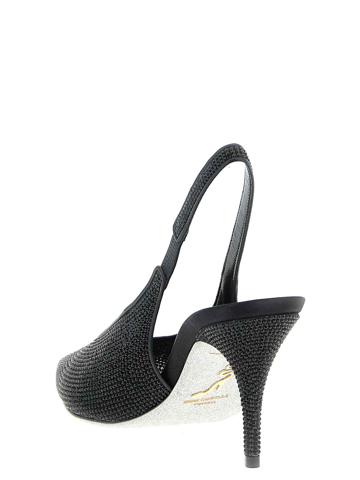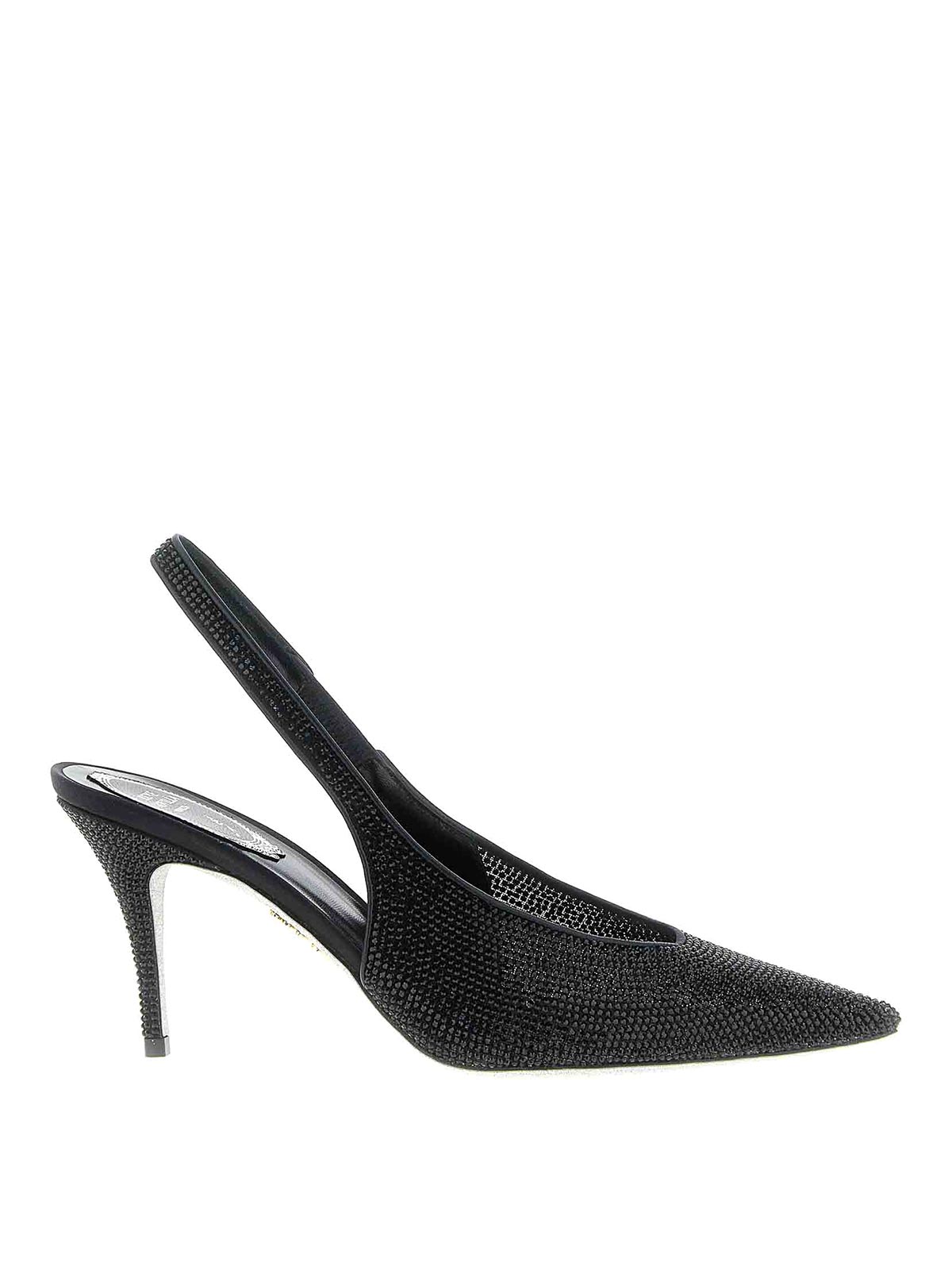 jinny' fabric slingbacks with all-over crystal appliqu, very tight toe design, elastic strap, stiletto heel, 'polvere di stelle' sole.