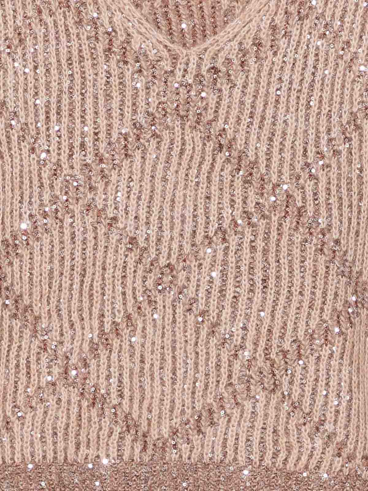 Beige sequin embellishment v, neck sleeveless pattern ribbed hem