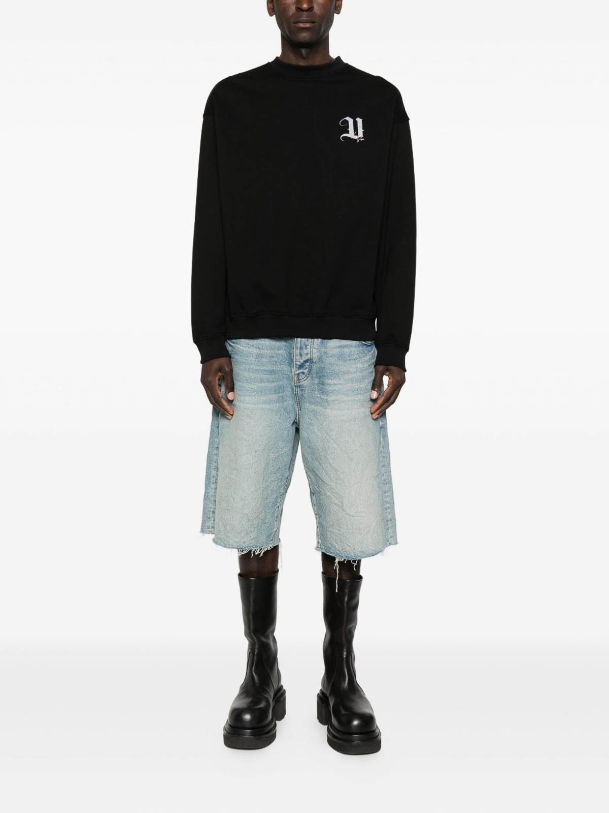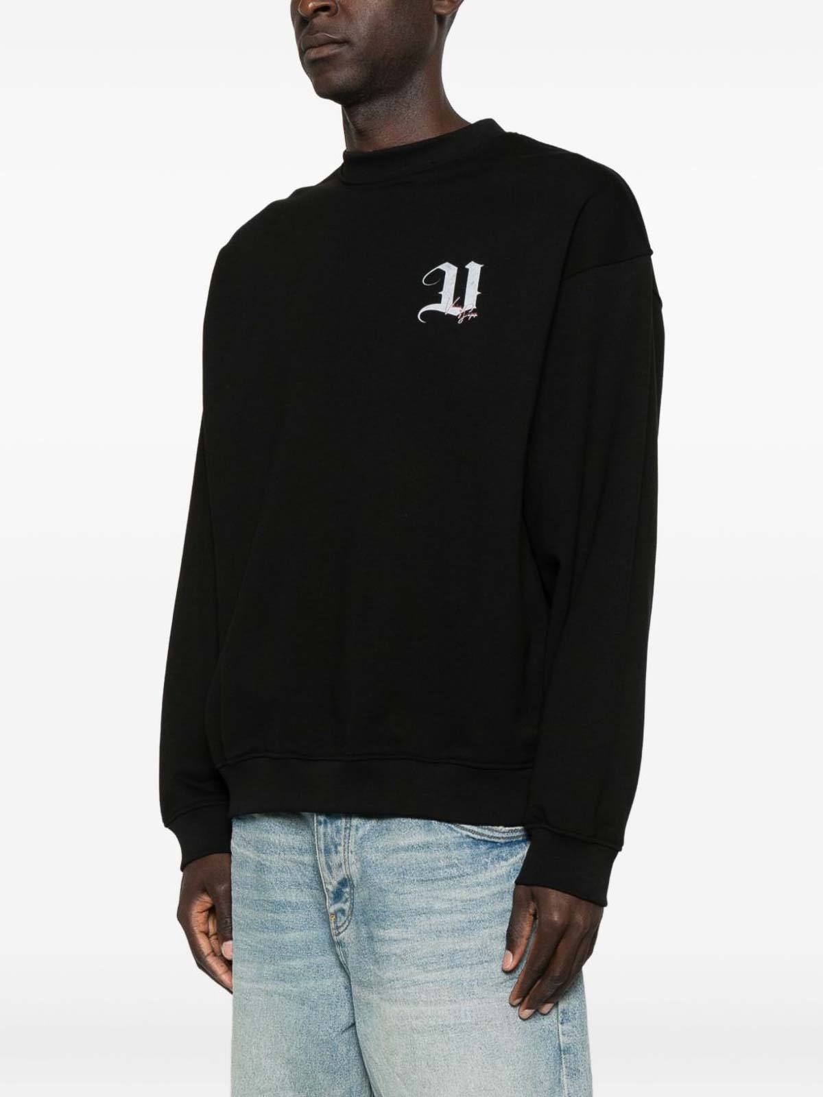 Black graphic print round neck long sleeves ribbed cuffs and hem