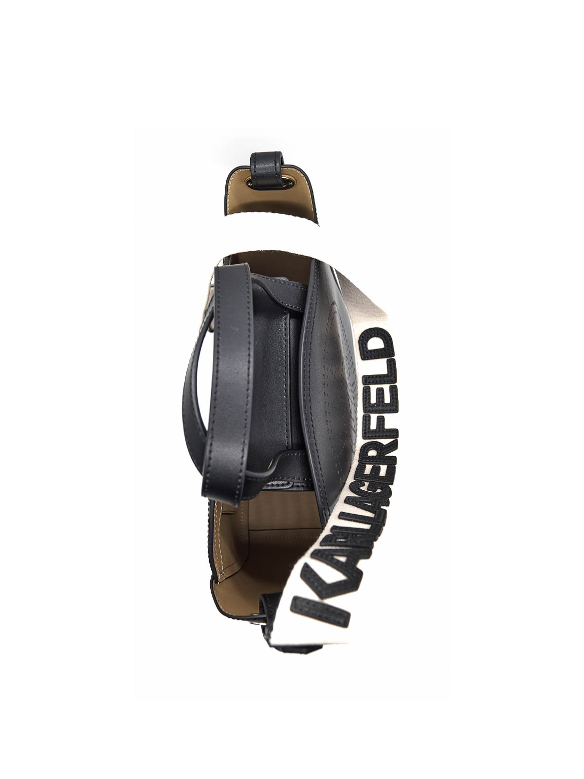 K / Circle Small Tote Scenated in black this BAG Tote K / Circle of Karl Lagerfeld made of luxury presents with a rectangular silhout and shaped edges and characterized by a perforatokarl circle art on the equipped with a magnetic button double handles with and a detachable in tape with the Karl logo with magnetic button double detached handles with the karl logo. Karl circle logo perforated on the with pocket color with internal zip plate with signatures sewn on the back black cow color h l w