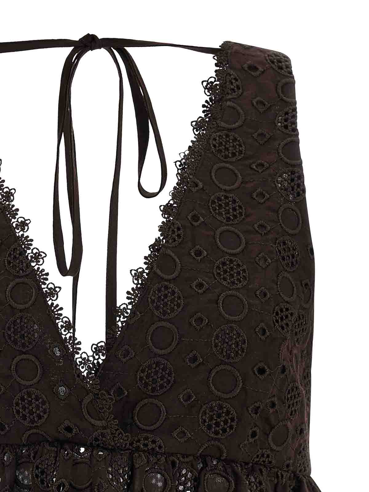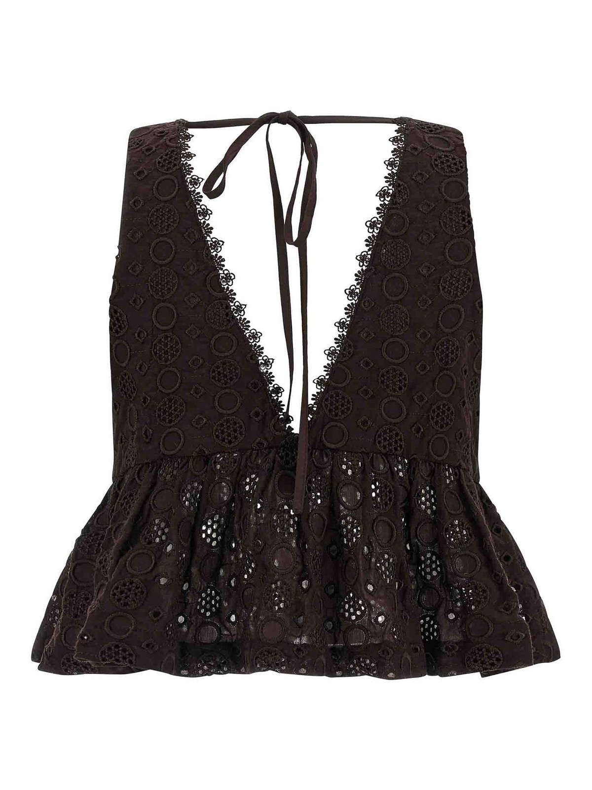 kiersten' cropped top in sangallo with v-neck on the front and back, lacing to tie at the back, side zip closure, flounce on the hem.