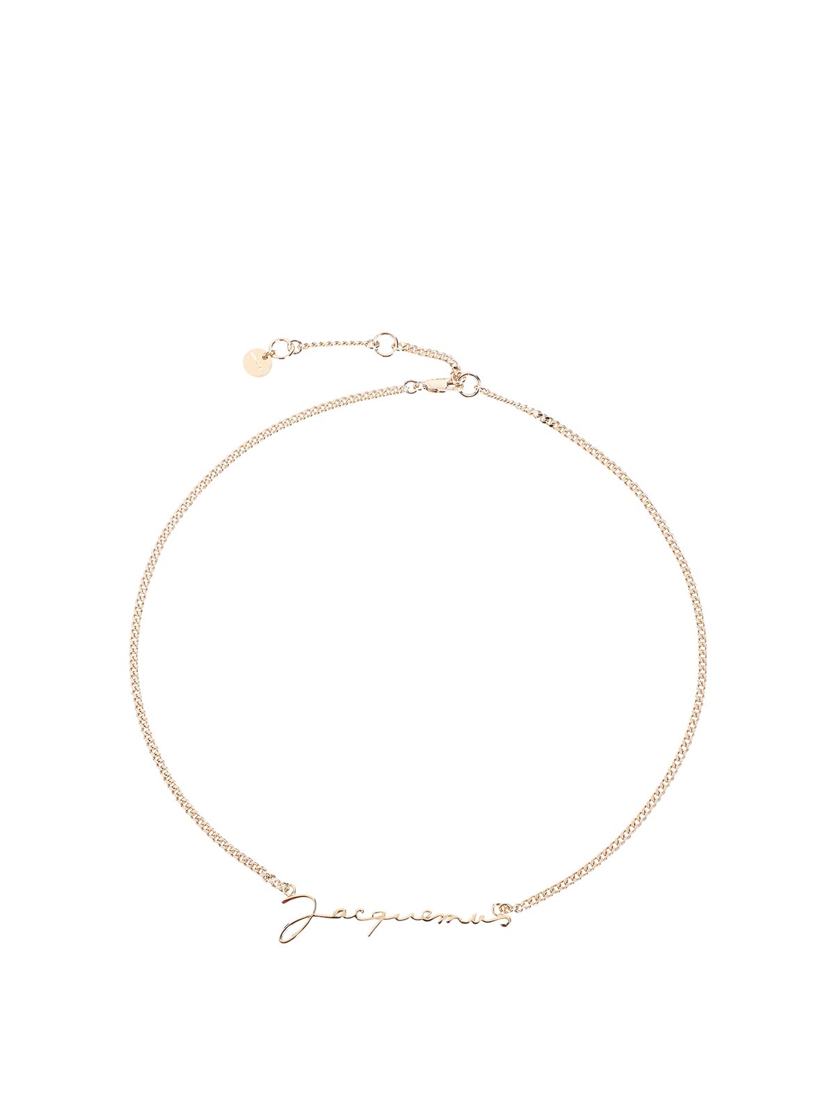Jacquemus la chaine necklace golden-tone hardware fine chain with three adjustable lengths plate logo and lobster clasp