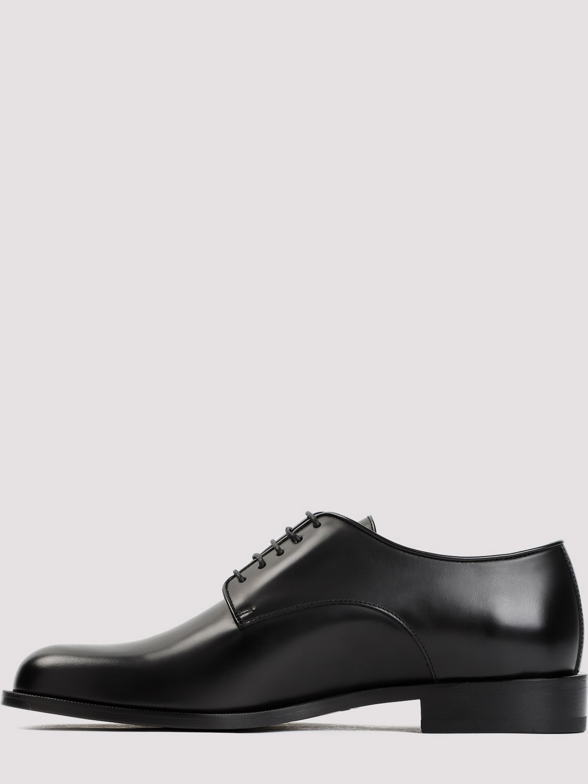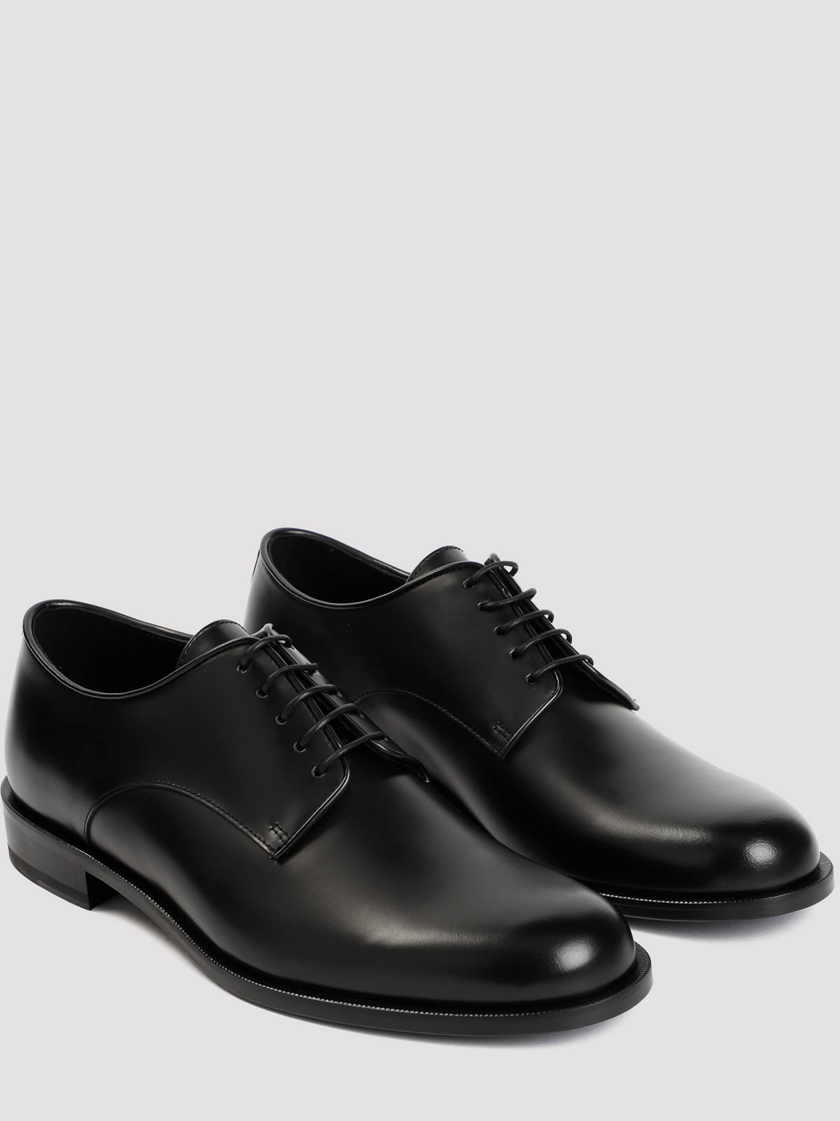 Giorgio armani black laced shoes. upper crafted in black bull leather, almond-round toe, tonal lace-up fastening, leather tongue, tonal stitching, leather branded insole and outsole.