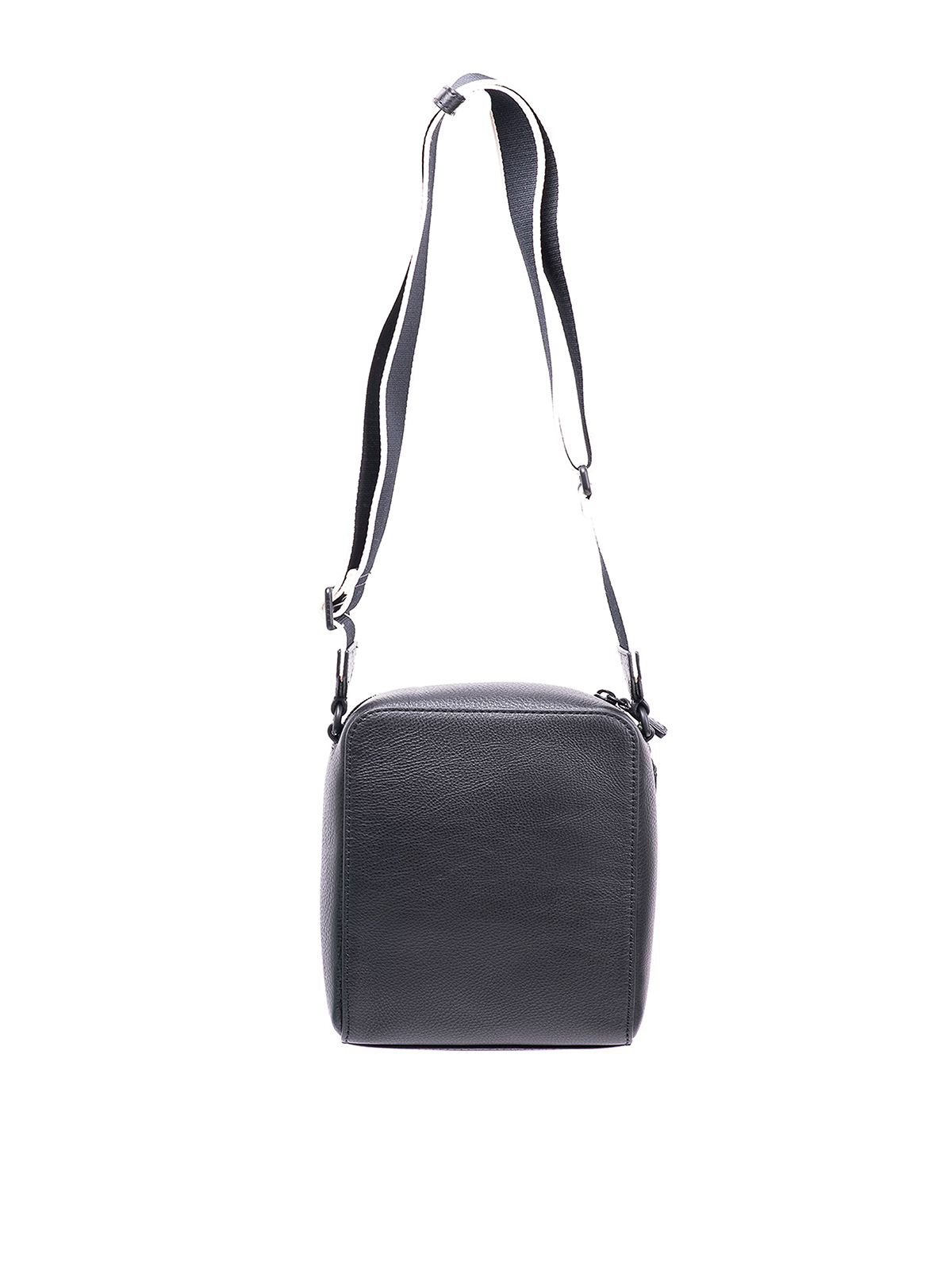 Kenzography crossbody bag in black, crossbody bag in grainy black leather with frontal embossed logo in contrast color and fabric and leather adjustable strap, zip closure, single inside compartment with side pocket, dustbag,