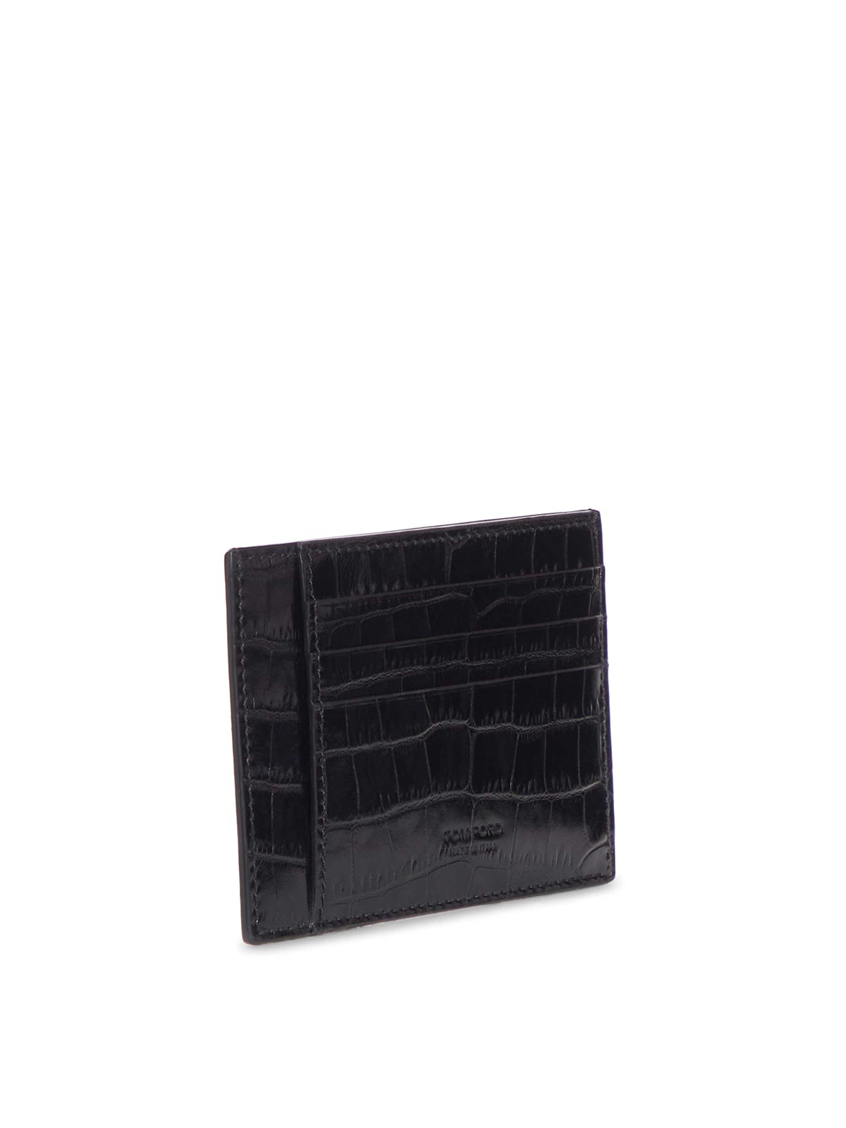Card holder, print, credit card slots, top bill compartment, tom ford logo embossed on the in matching tones, - color black
