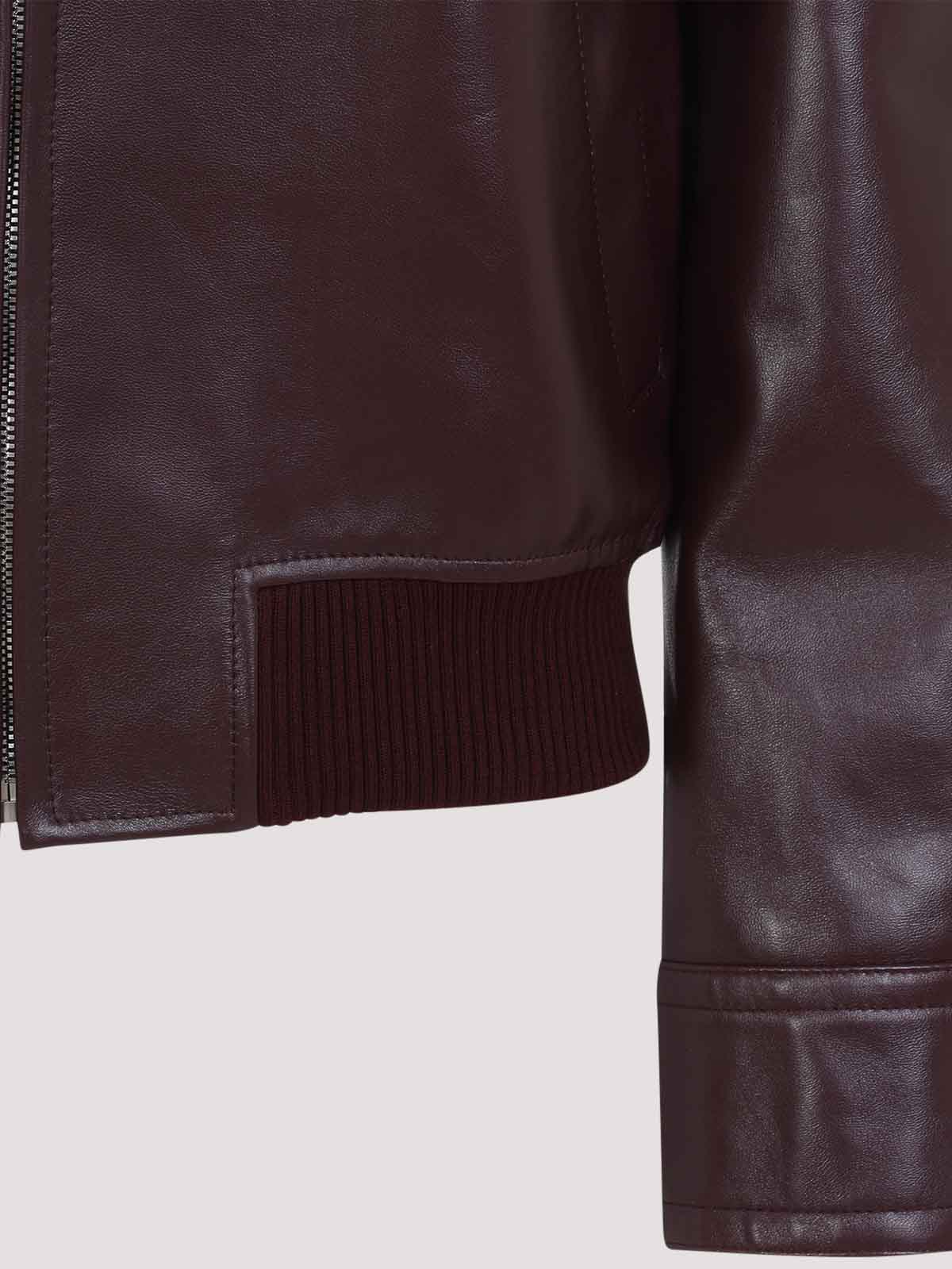 Bottega veneta bordeaux jacket bordeaux intrecciato collar long sleeves zip side pockets ribbed waistband fully lined shoulders