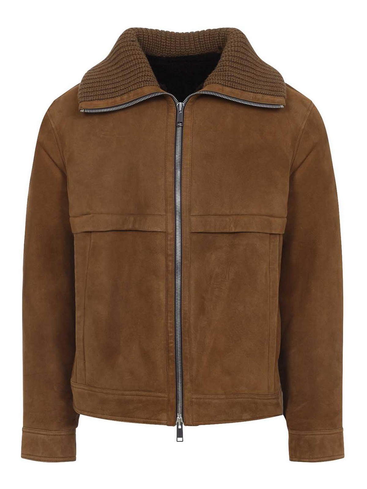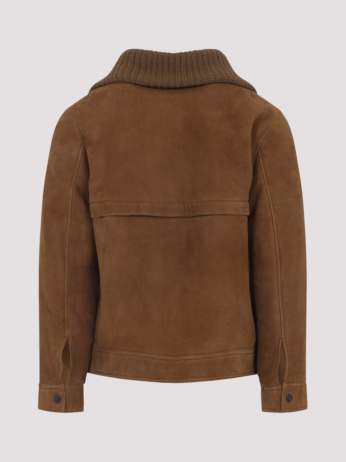 Yves salomon brown jacket crafted from brown standing collar with ribbed zip hidden side pockets dropped shoulders buttoned cuffs