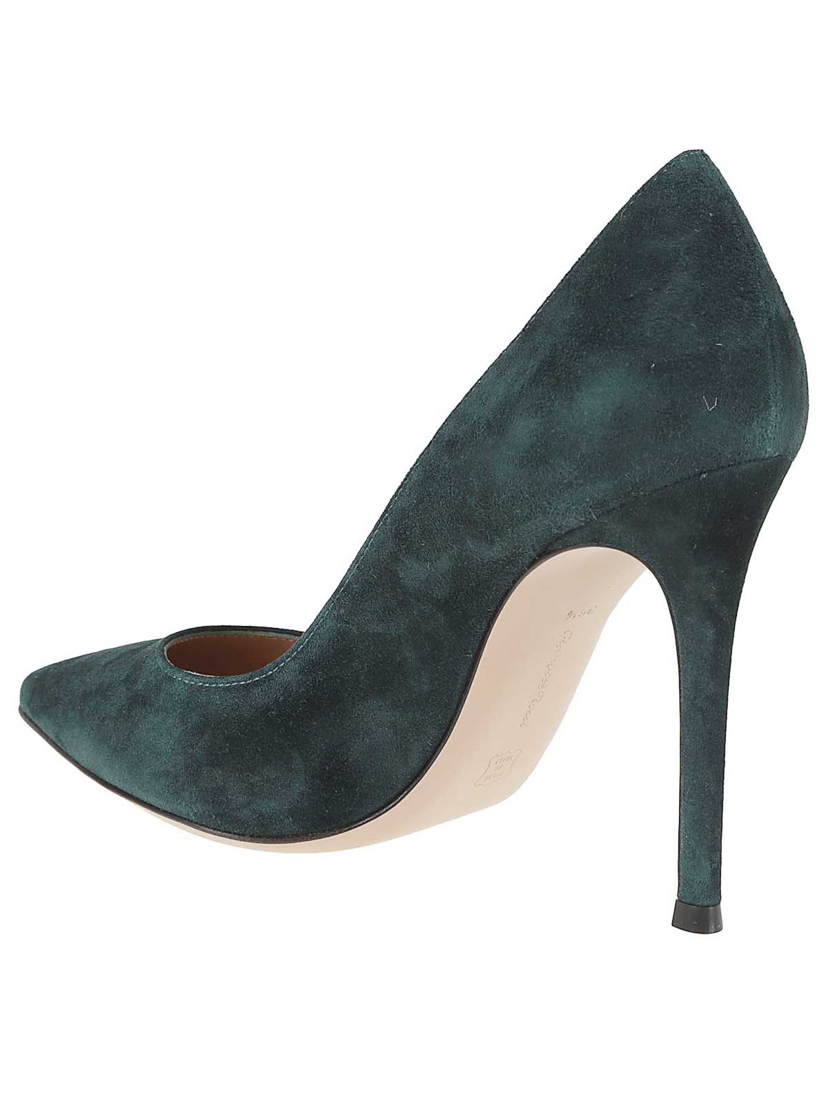 Suede calfskin pumps by Gianvito Rossi, featuring a pointed toe, branded insole, and a high 10.5 cm stiletto heel.