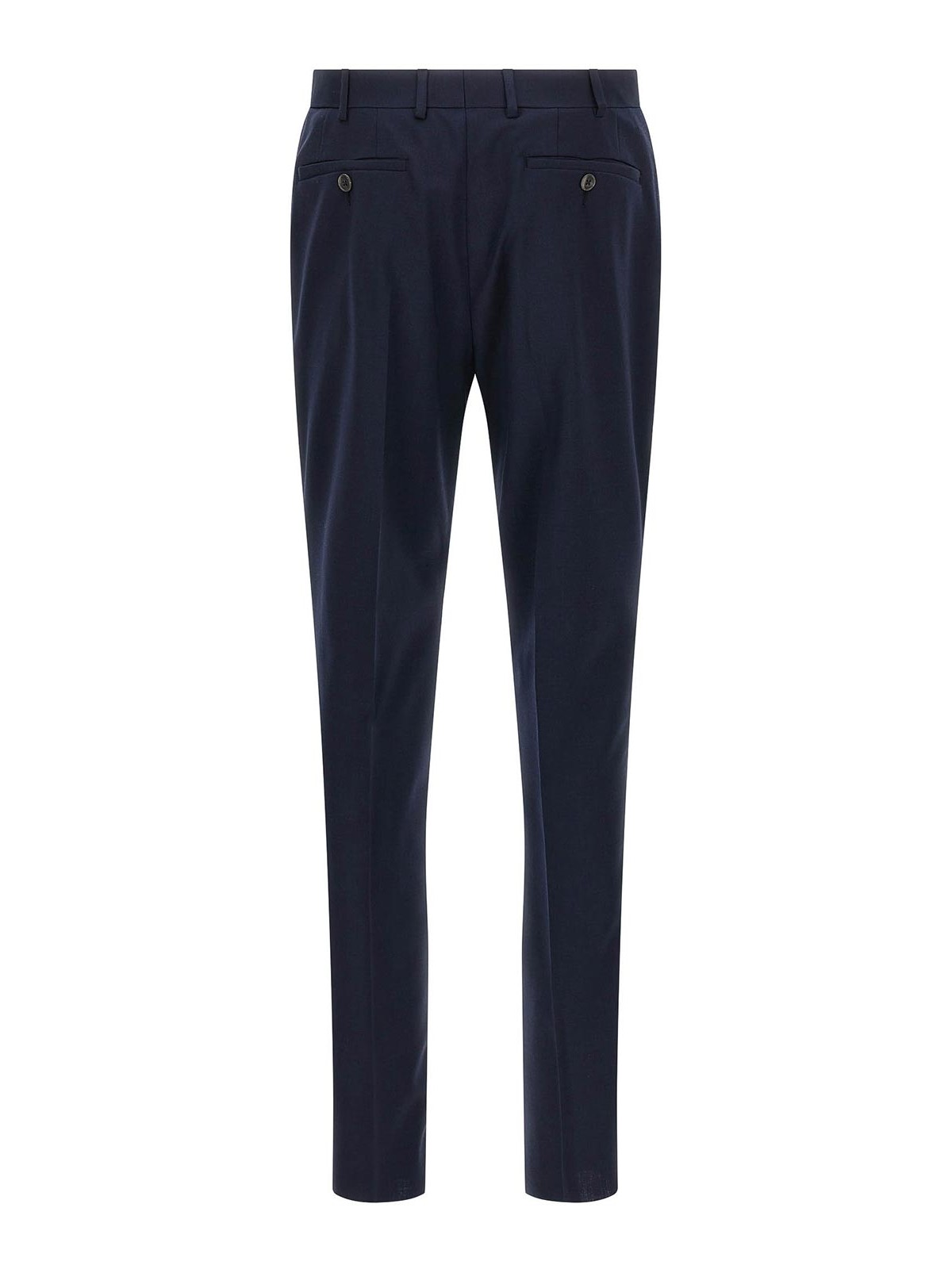 Linea cerimonia' wool dress consisting of single-breasted blazer with single button closure, contrast satin details, peak lapels, chest pocket, patch pockets, viscose lining, two inner pockets, buttonhole cuffs, back slits and ironed pleat trousers, front pockets americane, back welt pockets, front zip and button closure, viscose lining.
