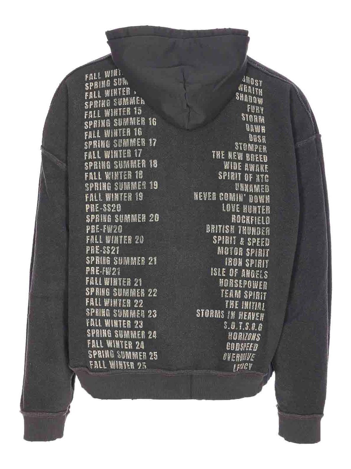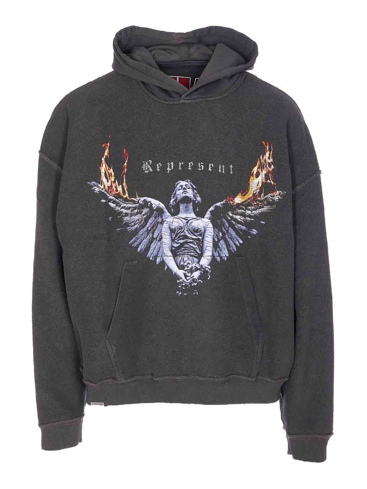 Represent sun fade grey represent living hoodie, long sleeves, printed, reversible model, one side with kangaroo pocket, distressed effect