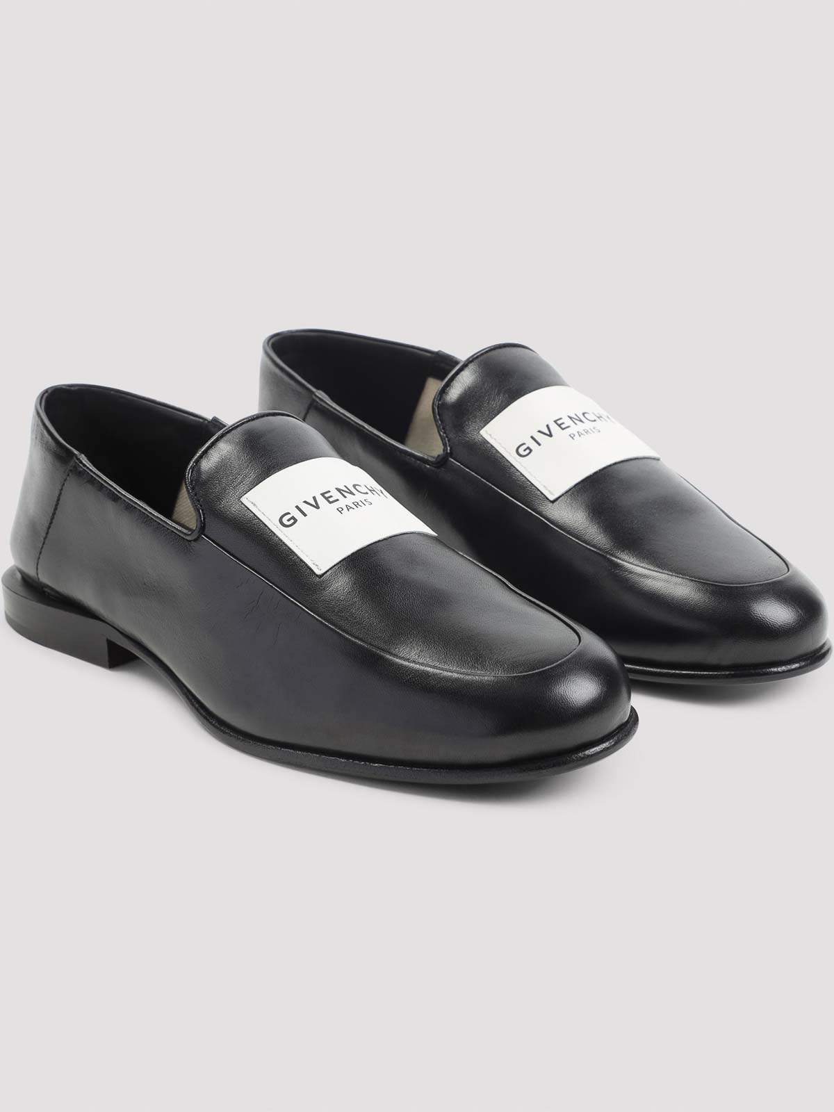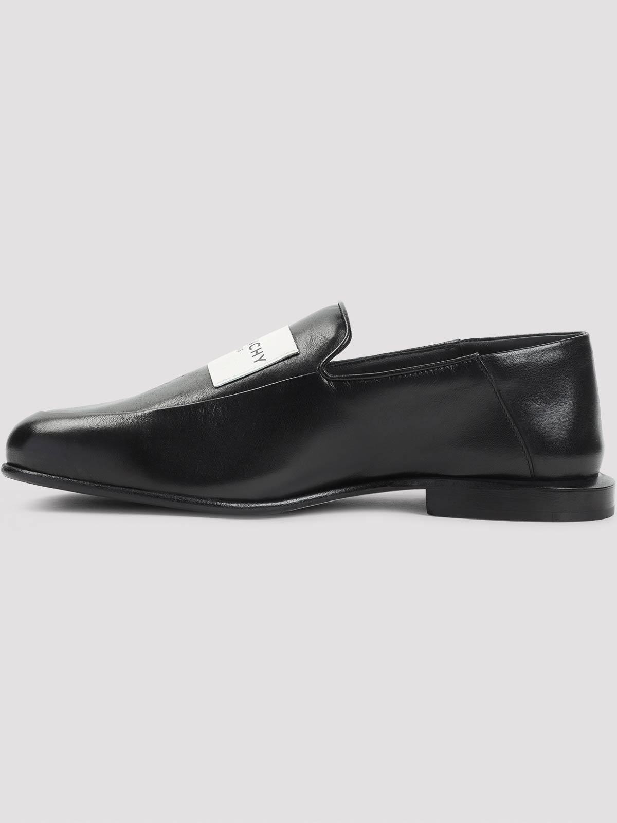 Givenchy black loafers pure black loafers squared toe top patch logo tonal stitching slip, on style tonal