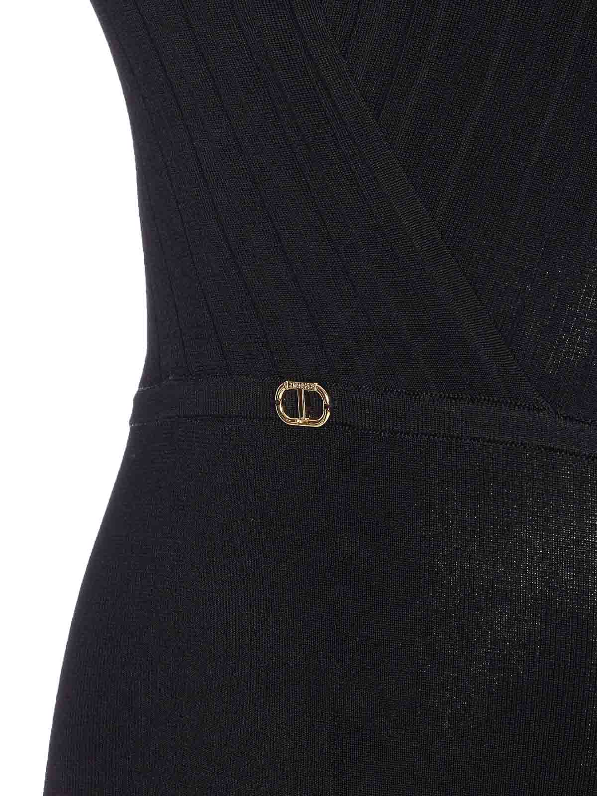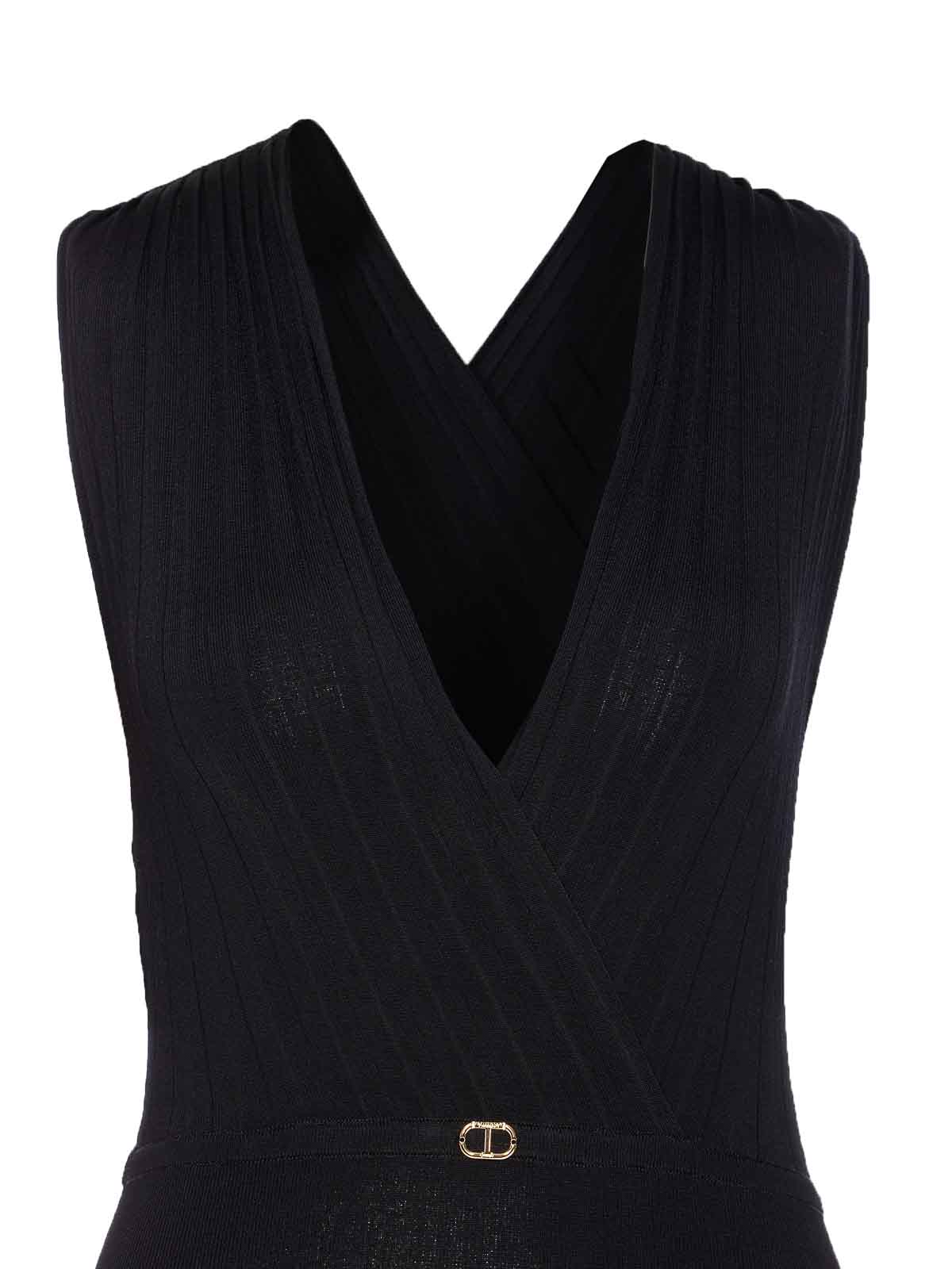 Twinset black body with button closure, v-neck, sleeveless, elasticized fit, logo on the front