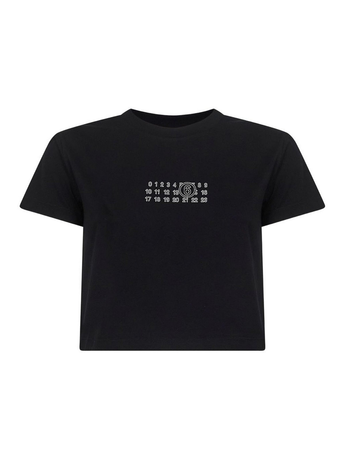 Black crew neck signature numbers motif short sleeves straight hem cropped