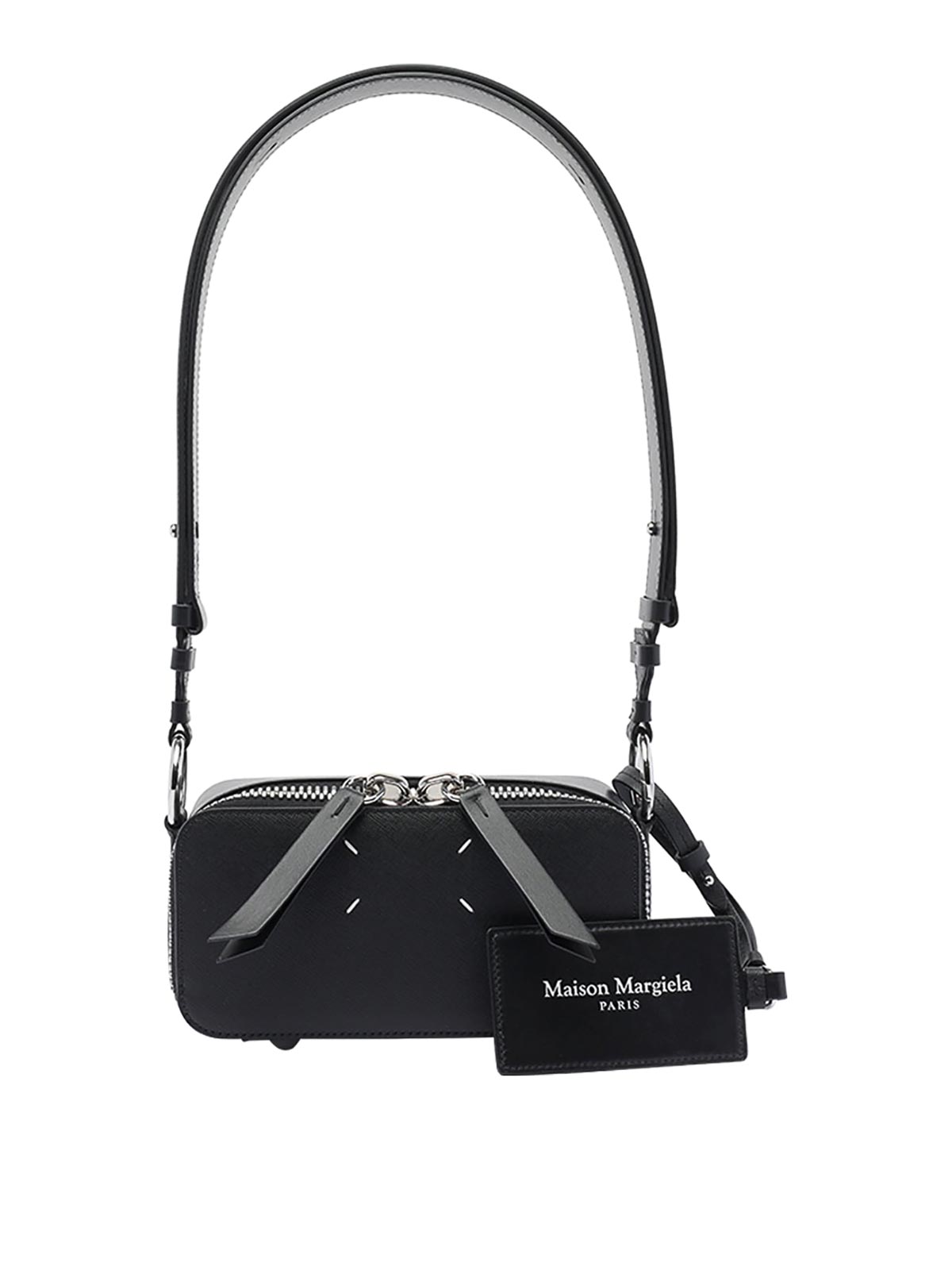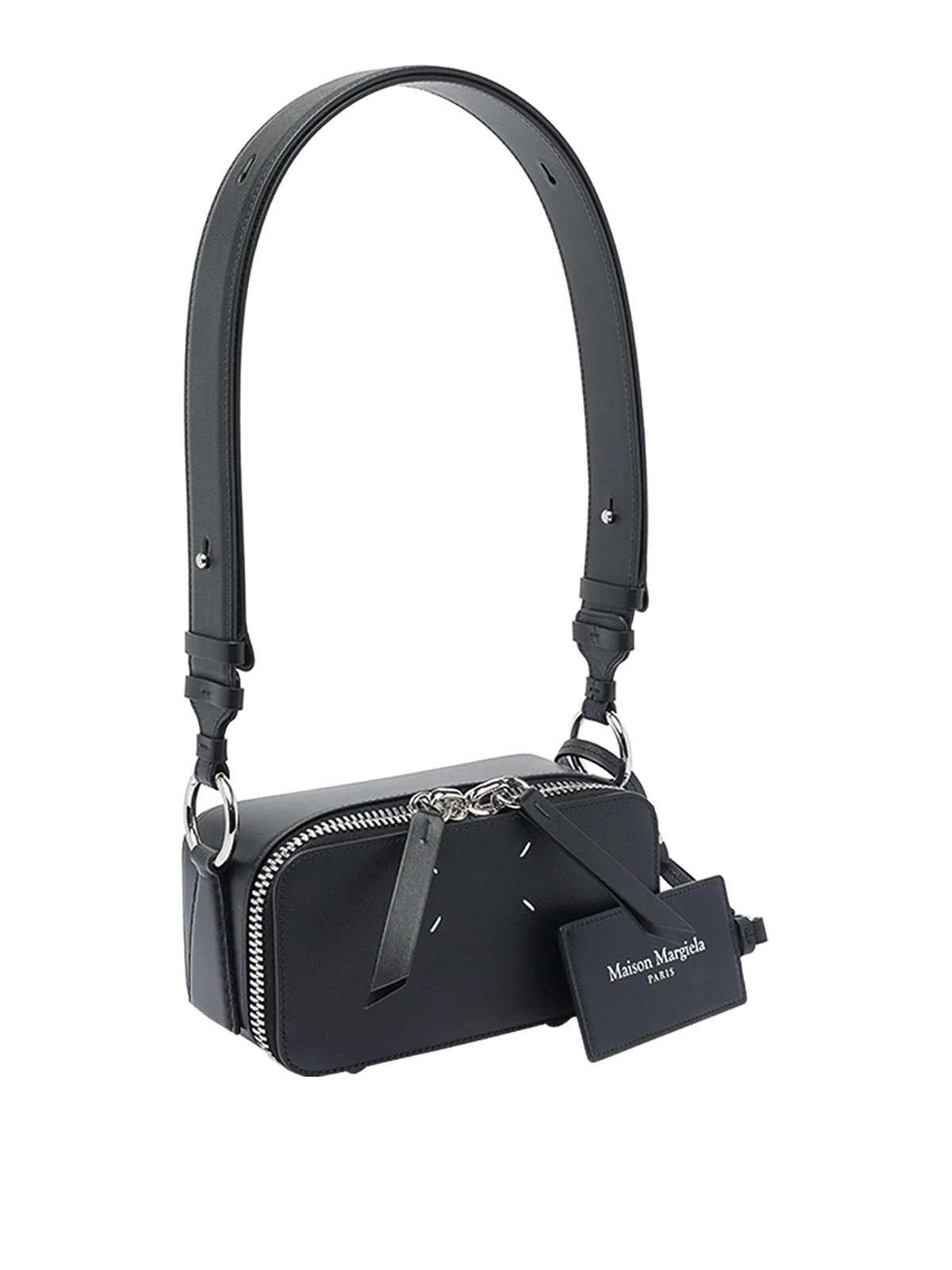 Maison margiela black crossbody bag zip slot adjustable and removable shoulder strap logo