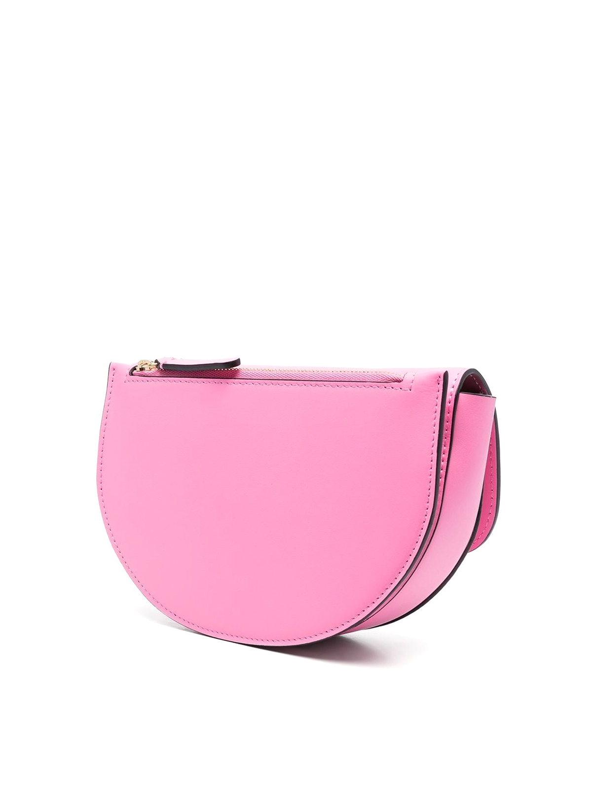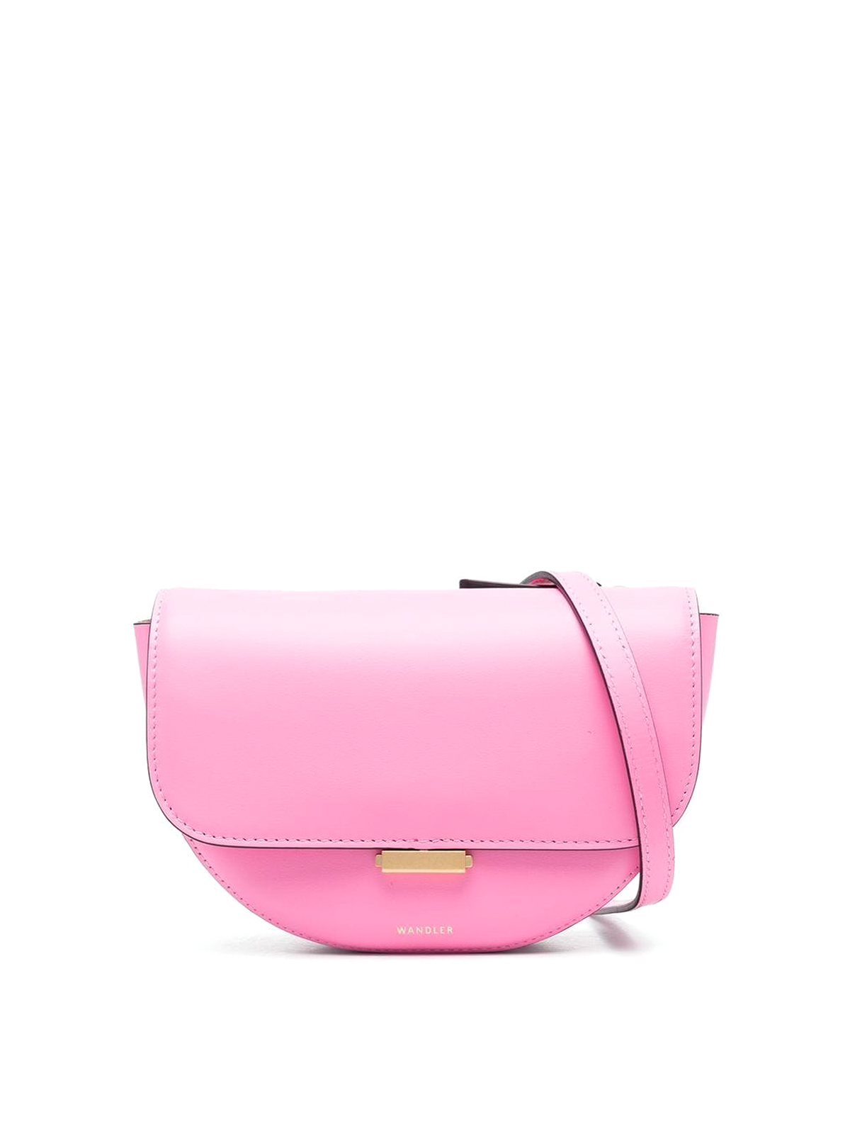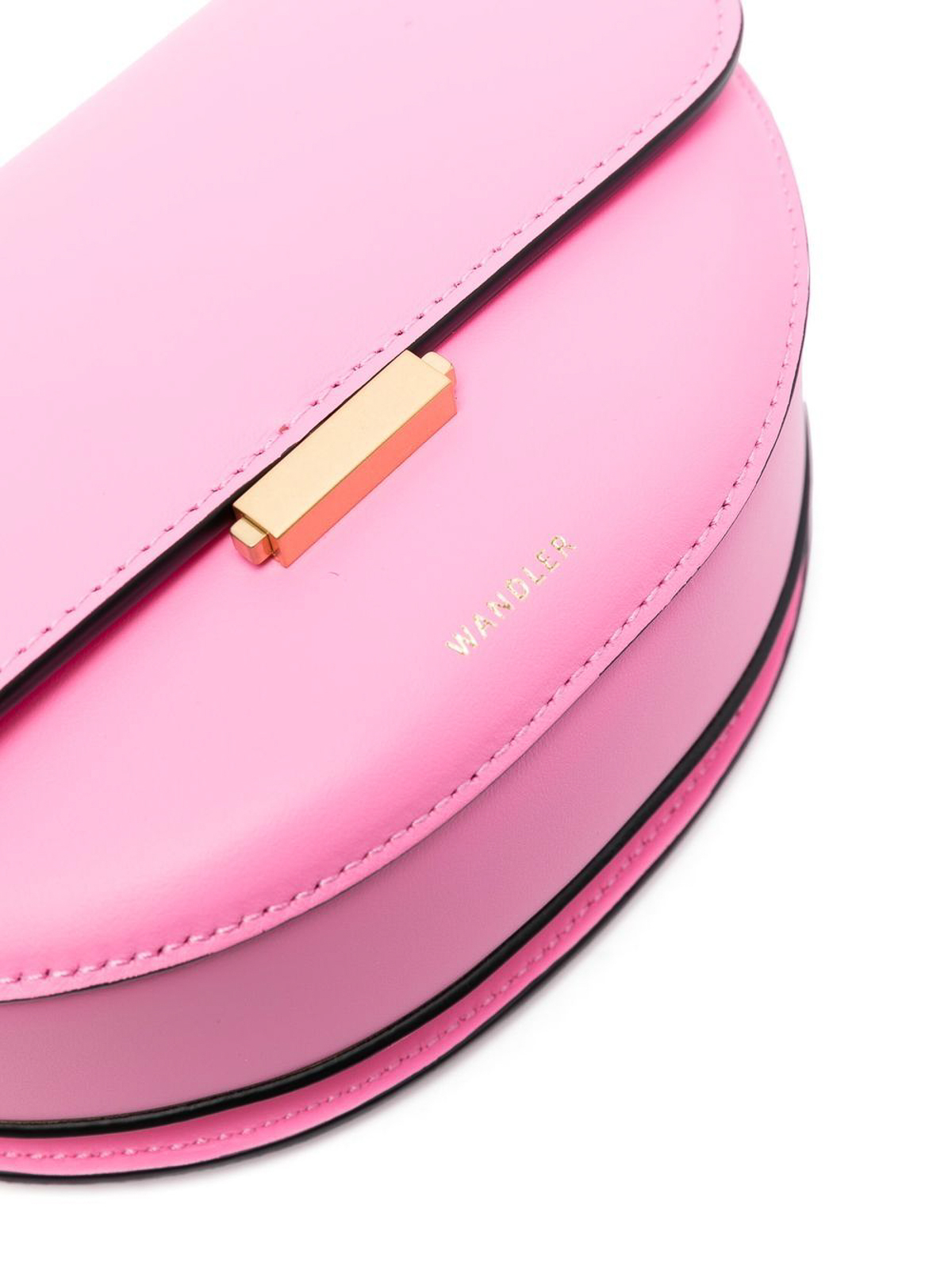 Logo-detail leather satchel bag from wandler featuring rose pink, calf leather, gold-tone logo lettering, concealed top zip fastening, single shoulder strap, foldover top and main compartment.