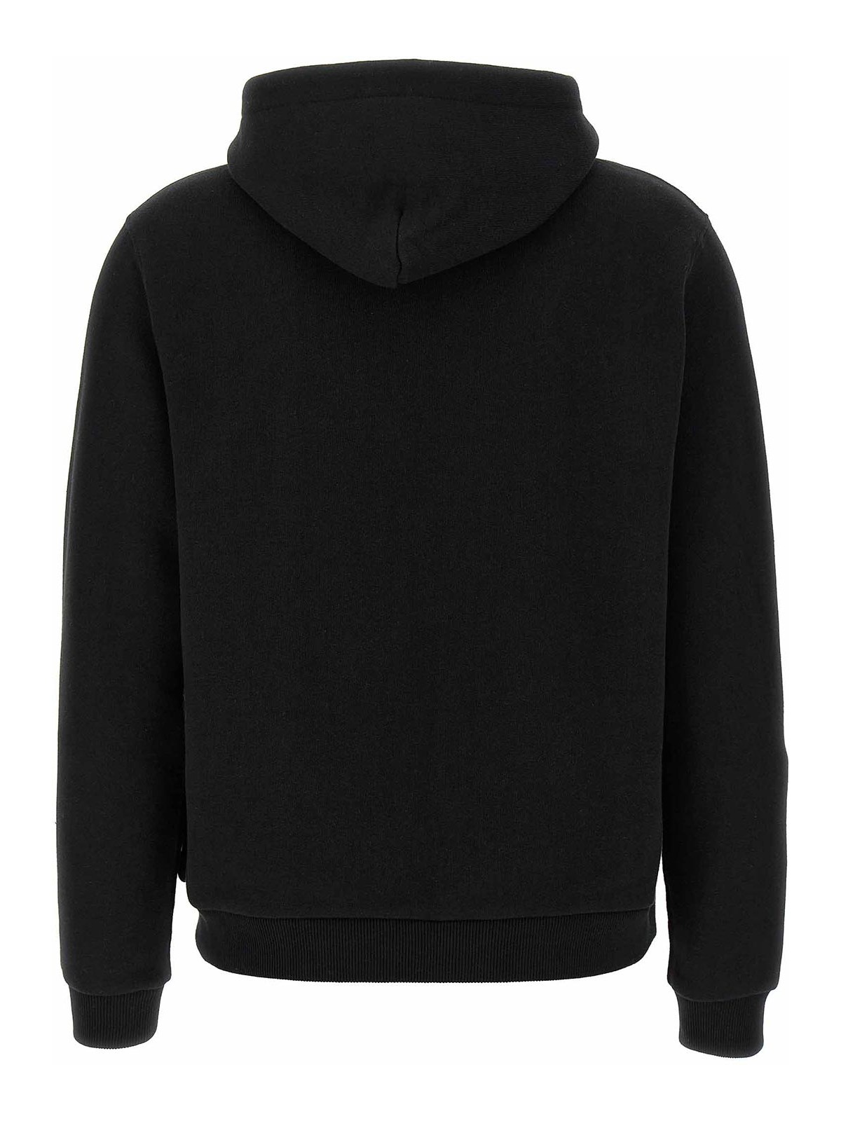 Fleece cotton hoodie with logo embroidery and front zip closure, pockets, long cuffed sleeves.