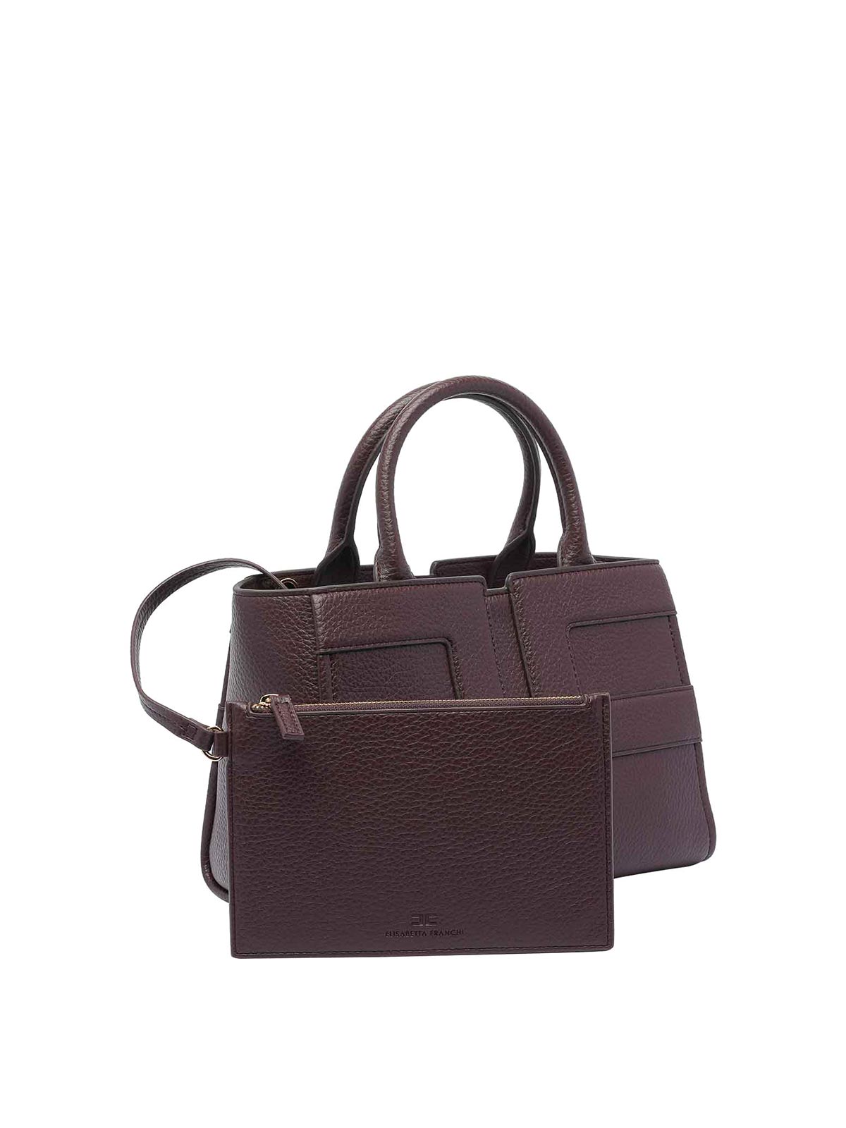 Elisabetta franchi merlot handbag carabiner open pocket and one with zip handles removable shoulder strap