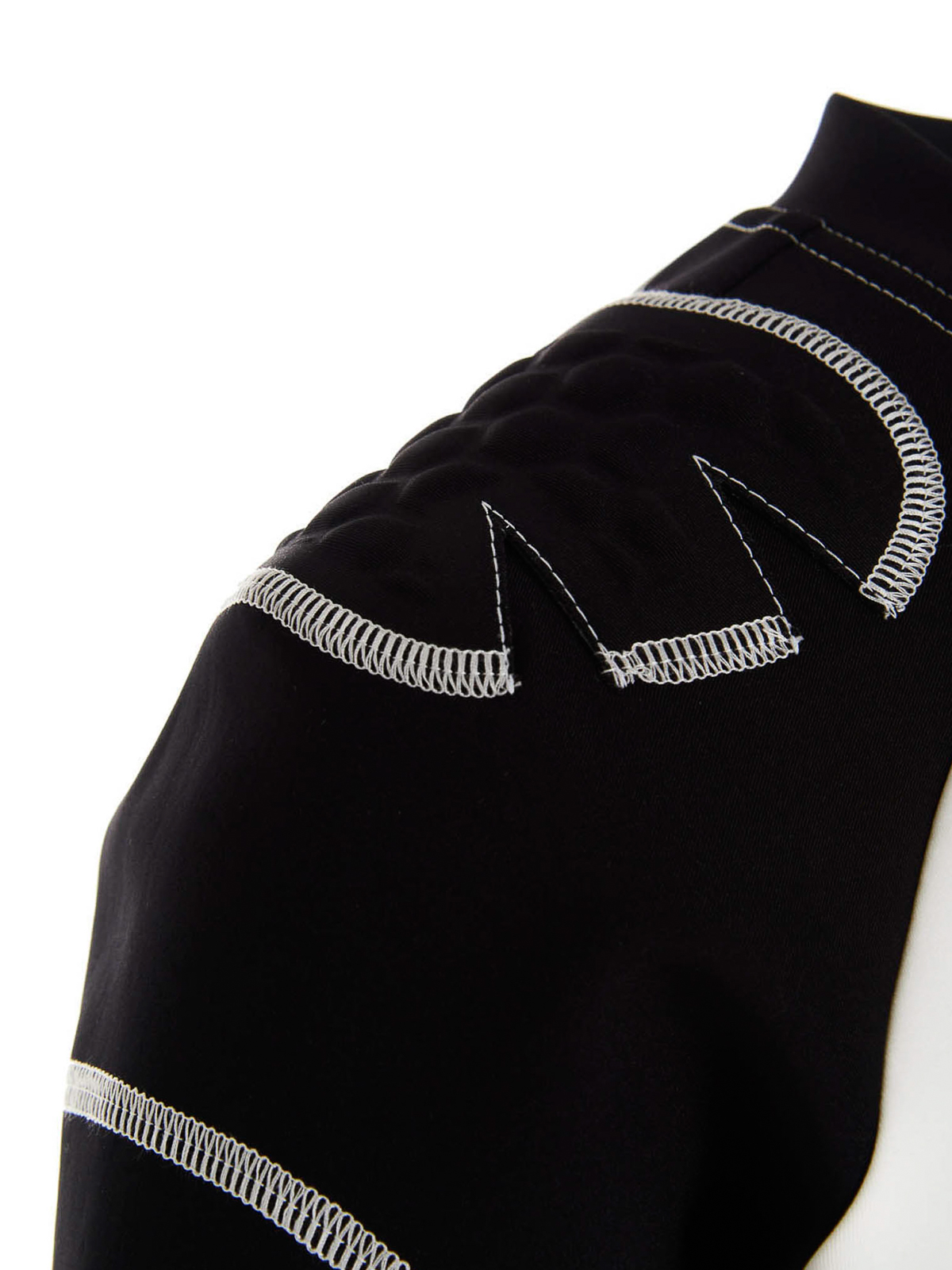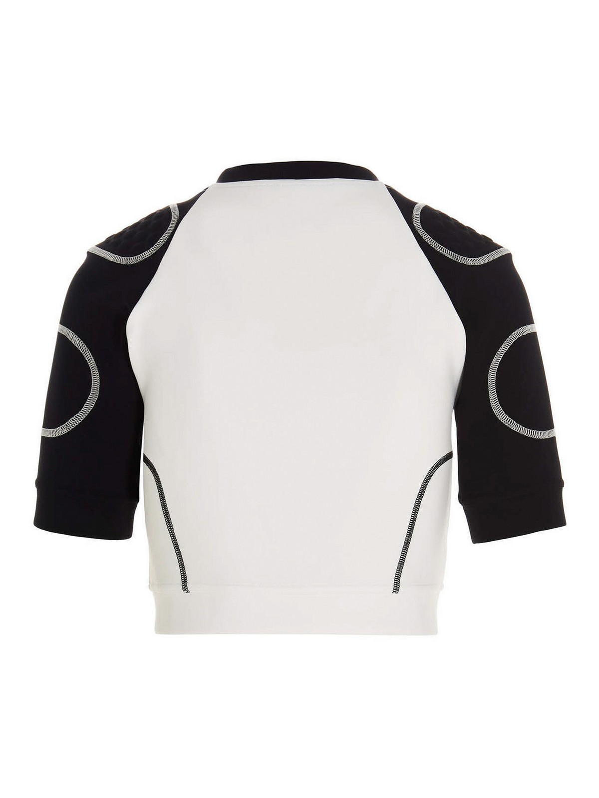 Neoprene crewneck top with a front logo print short crop style and a crewneck with contrast stitching