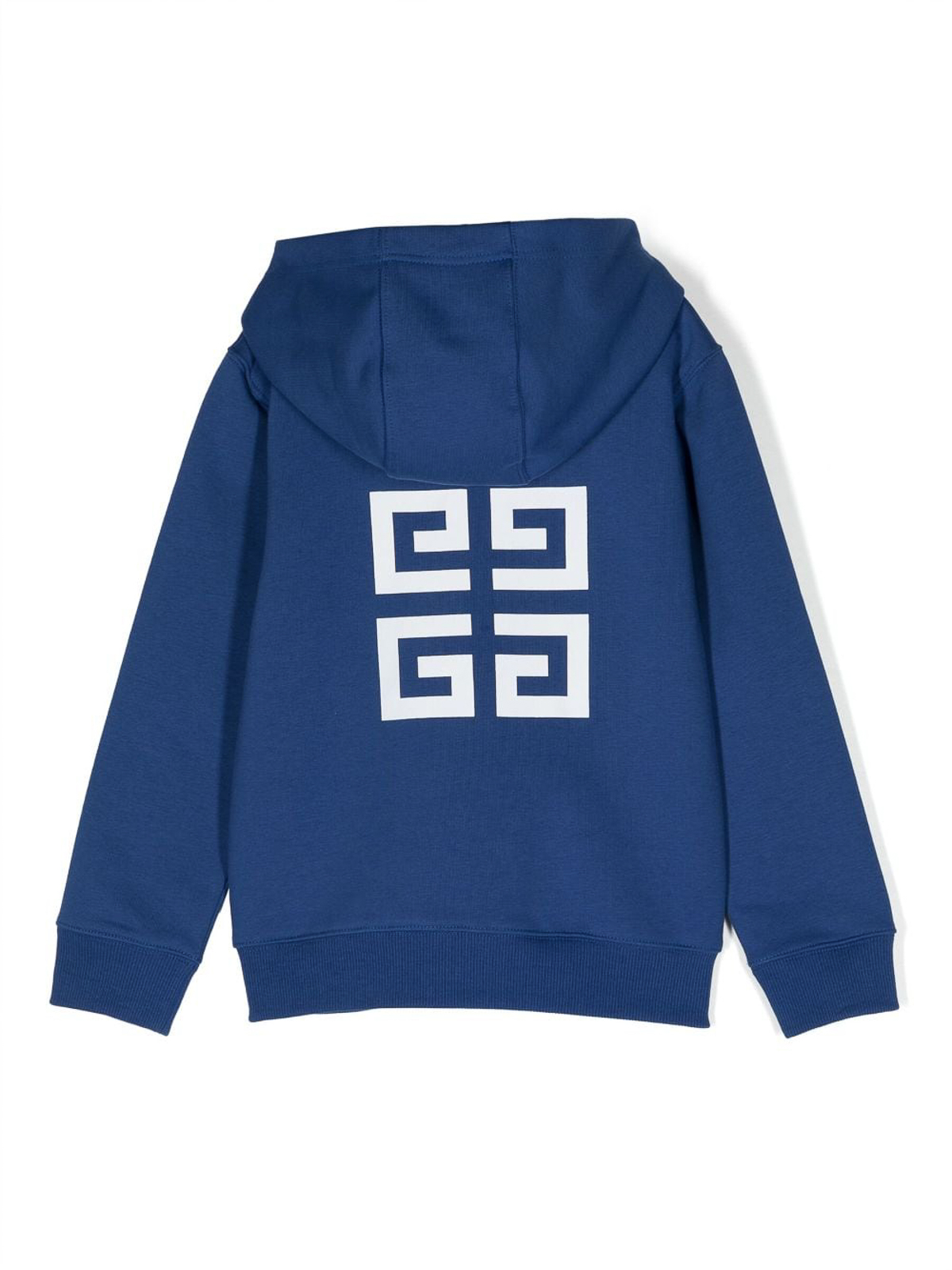 Logo-print zip-fastening hoodie from givenchy kids featuring blue cotton logo print to the front classic hood long sleeves front zip fastening and two front pouch pockets