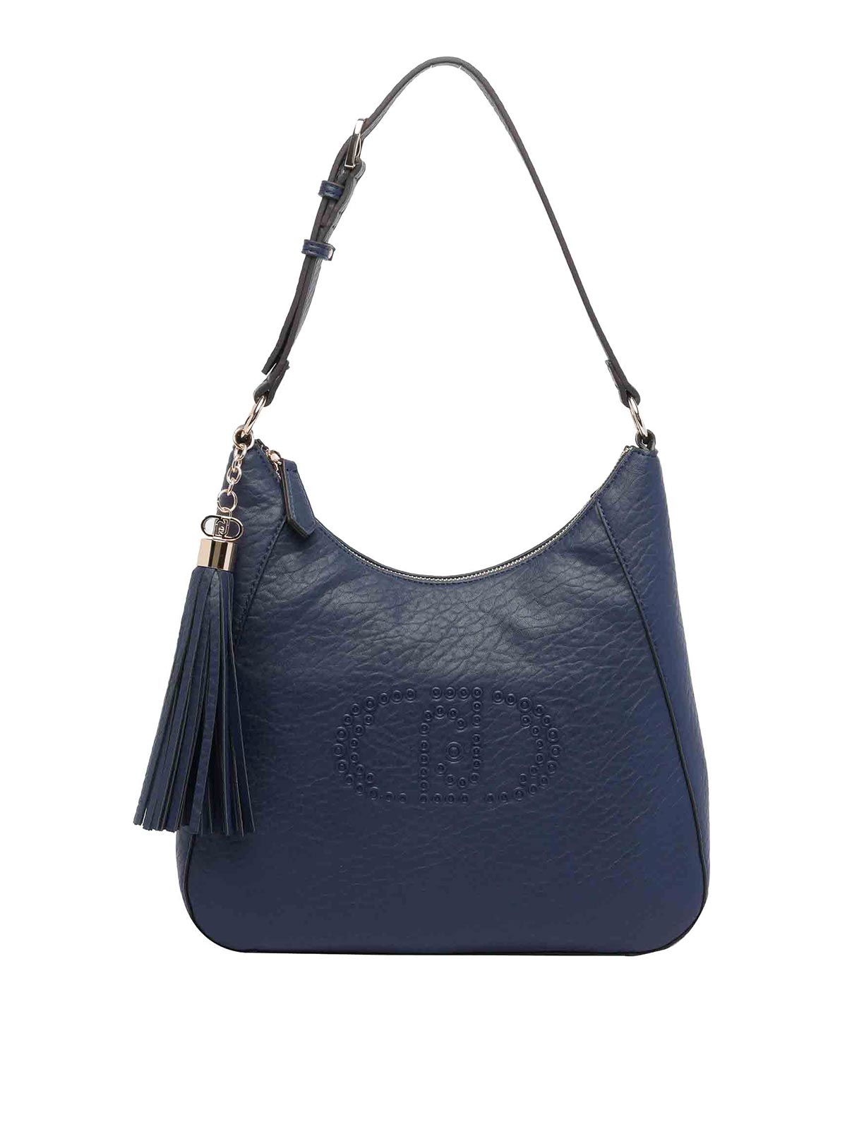 Liu jo blue logo shoulder bag, zip closure, inner zipped pocket, inner open pocket, adaptable strap, frontal tone on tone logo