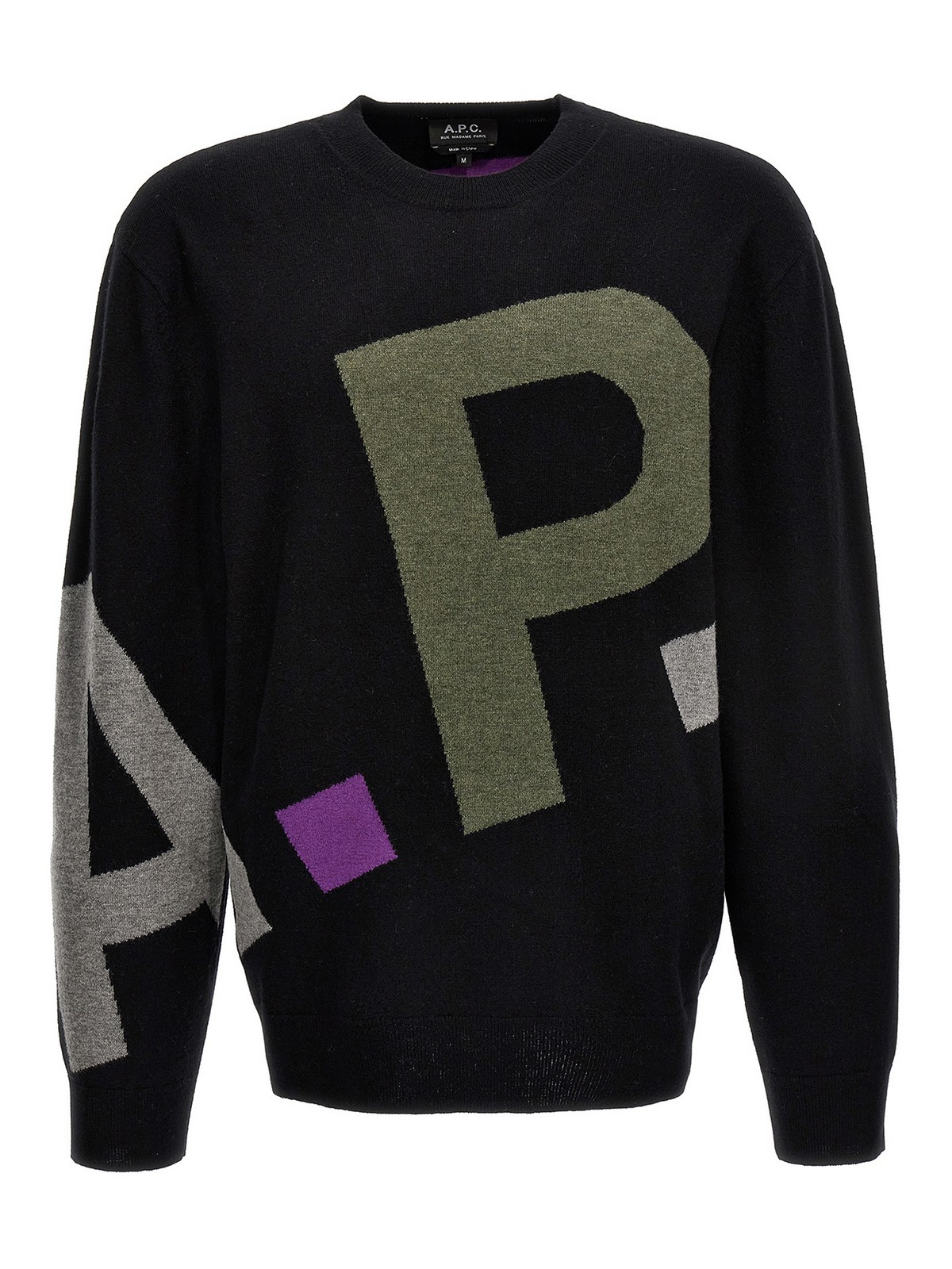 Wool sweater with all-over logo crewneck long cuffed sleeves