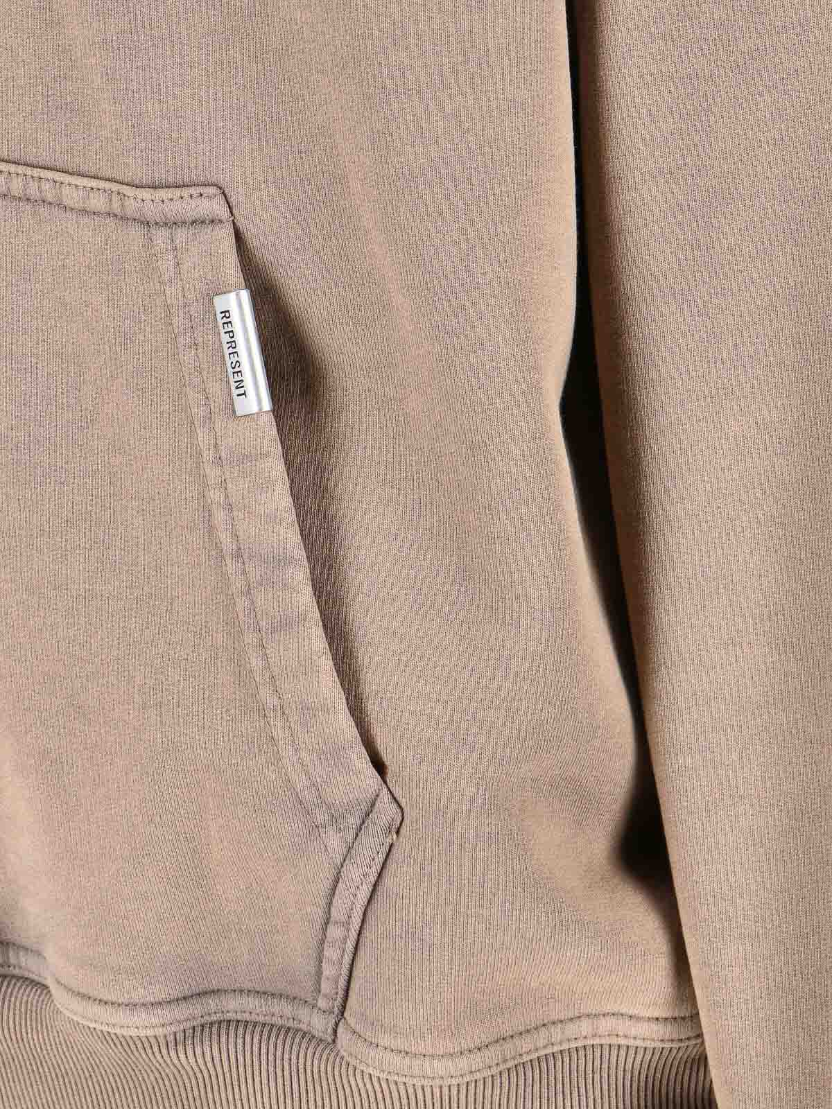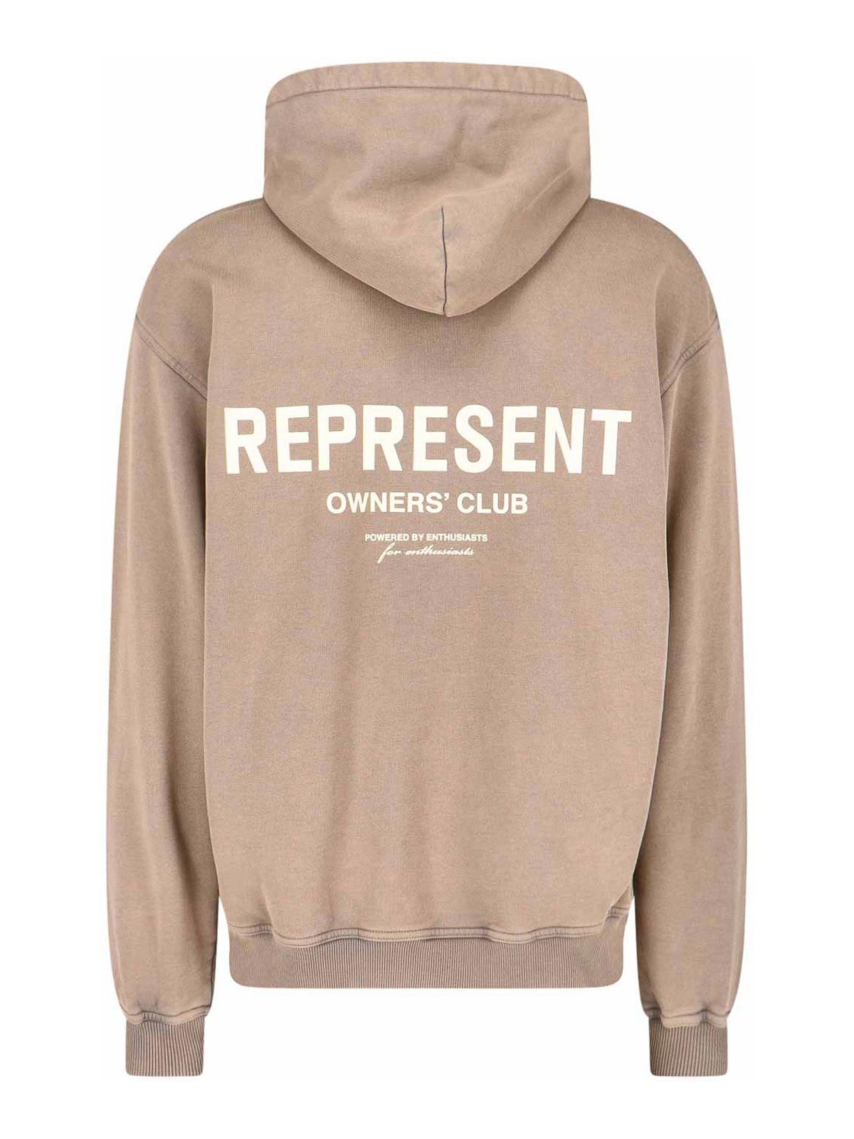 Logo represent sweatshirt in brown cotton, light shade, hood, long sleeves, one maxi front pocket, logo detail printed on front and back, ribbed finishes, straight hem.