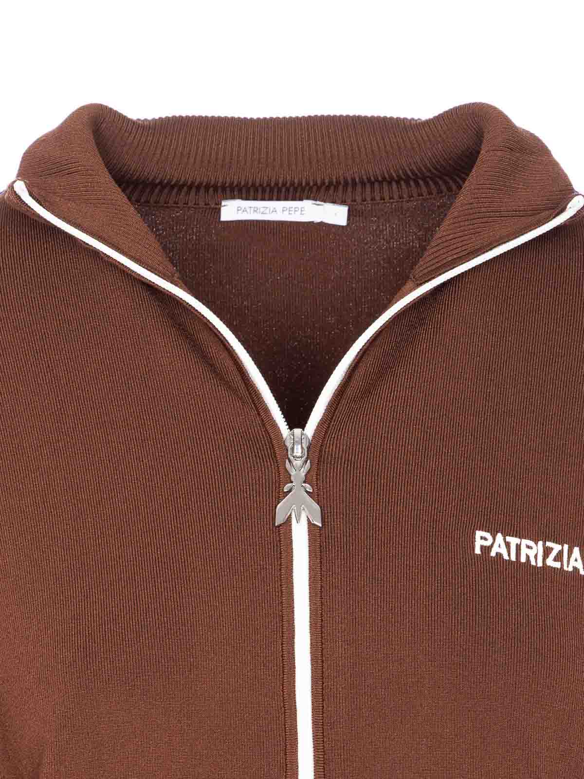 Patrizia pepe brown sweatshirt, zip closure, high neck, embroidered logo on the front, zip pockets, long sleeves