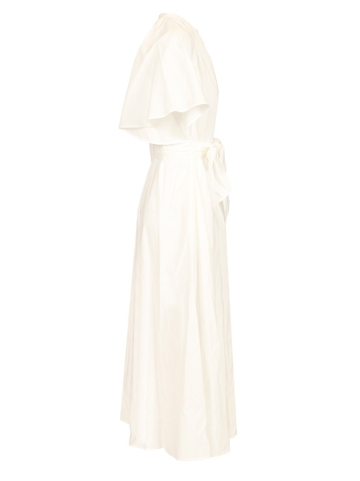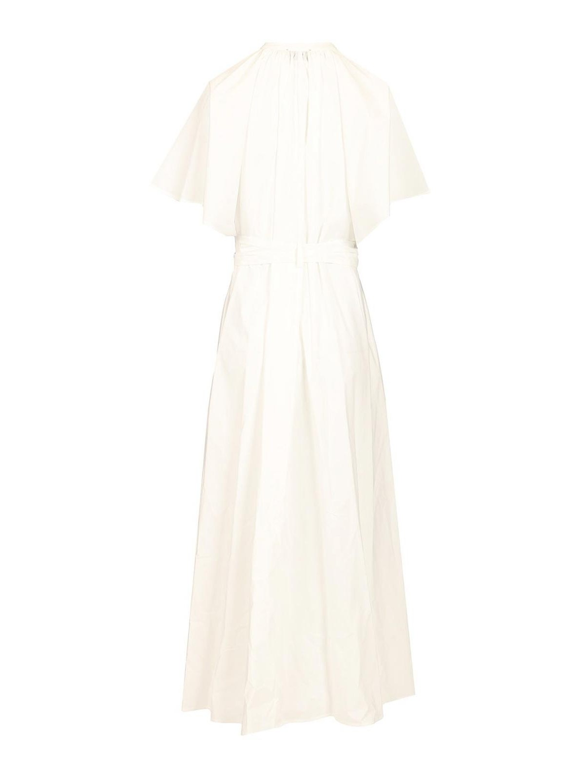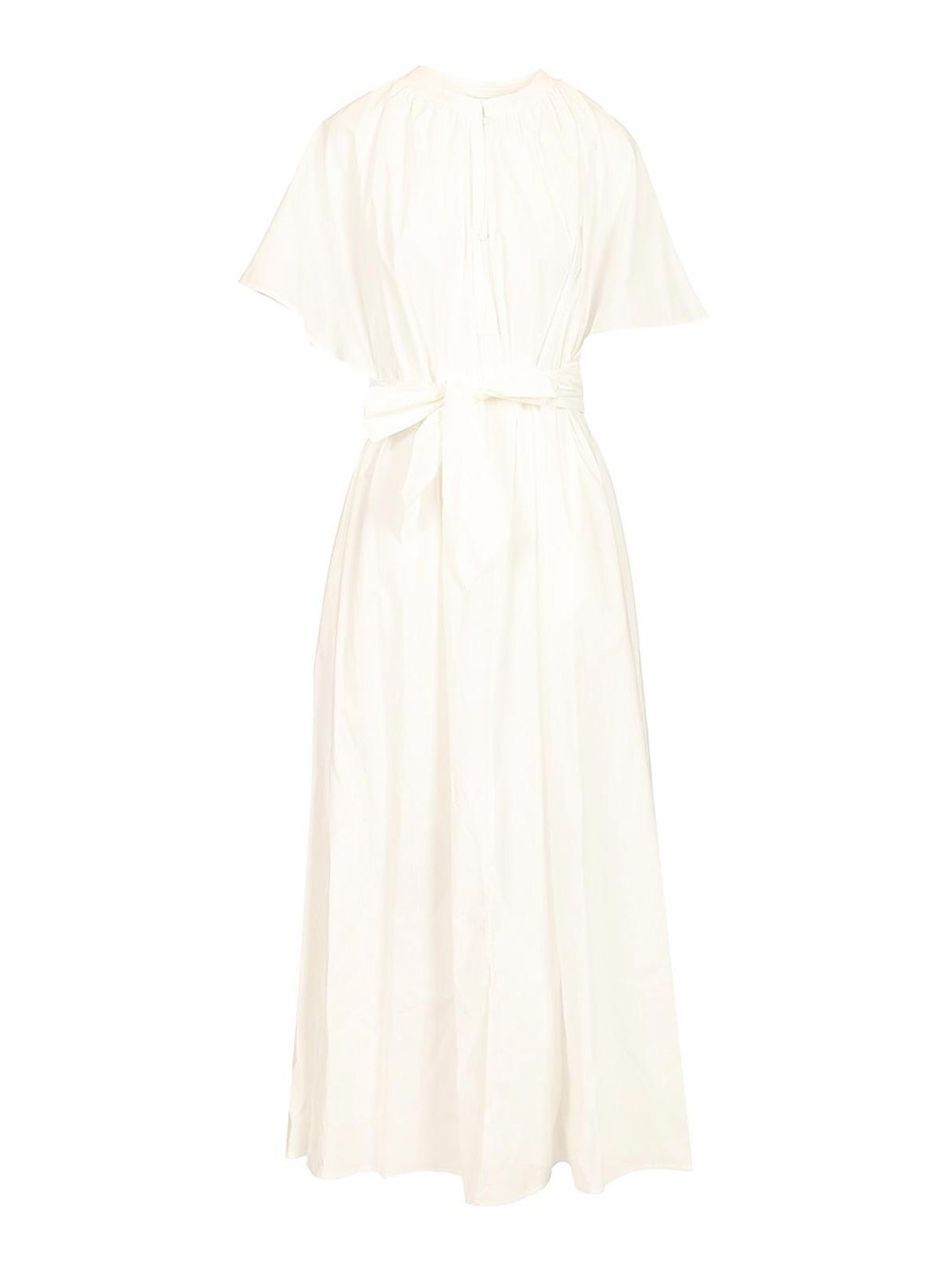 Cotton long dress from forte forte with round neckline, wide elbow-length sleeves and waist belt.