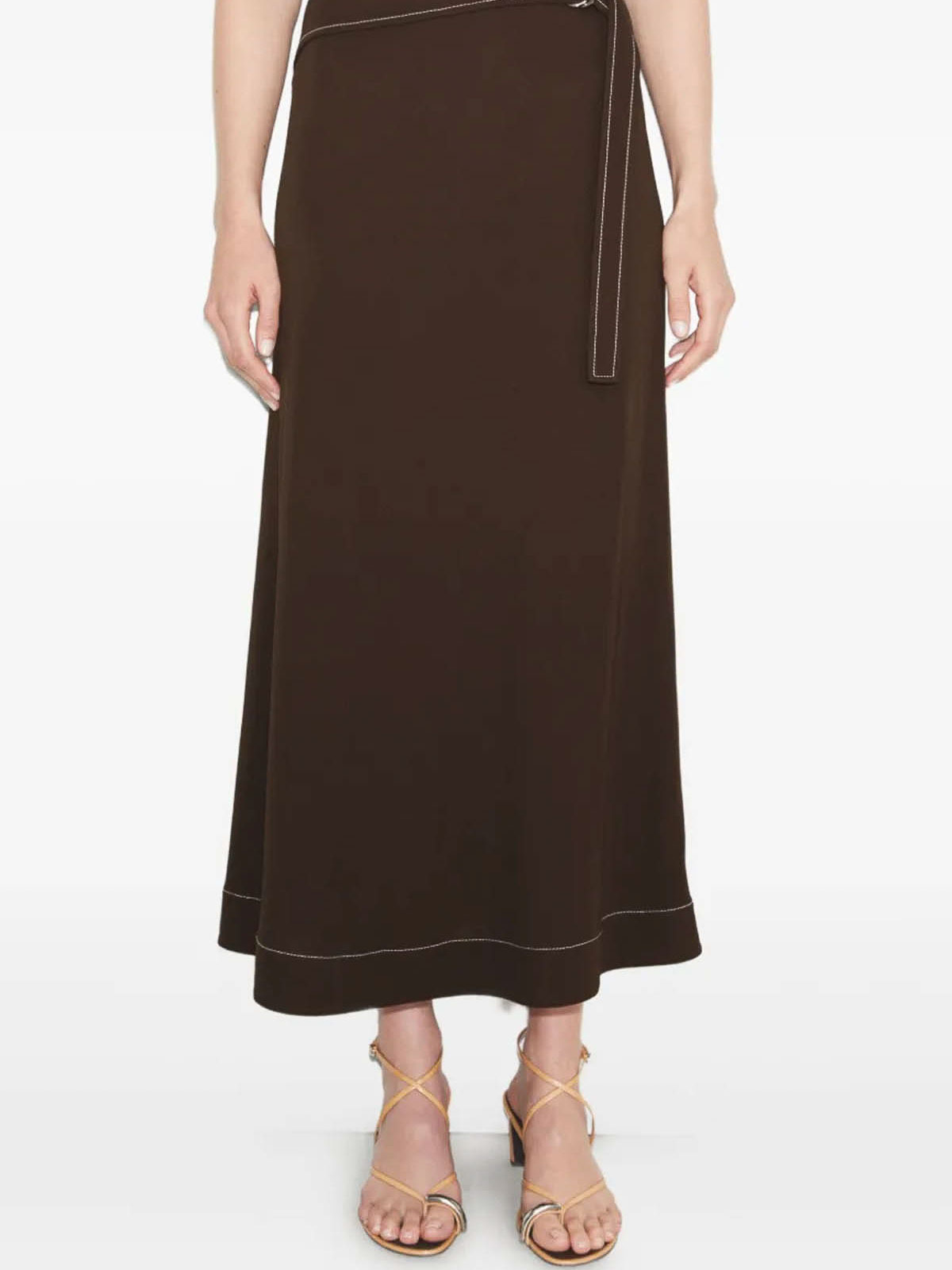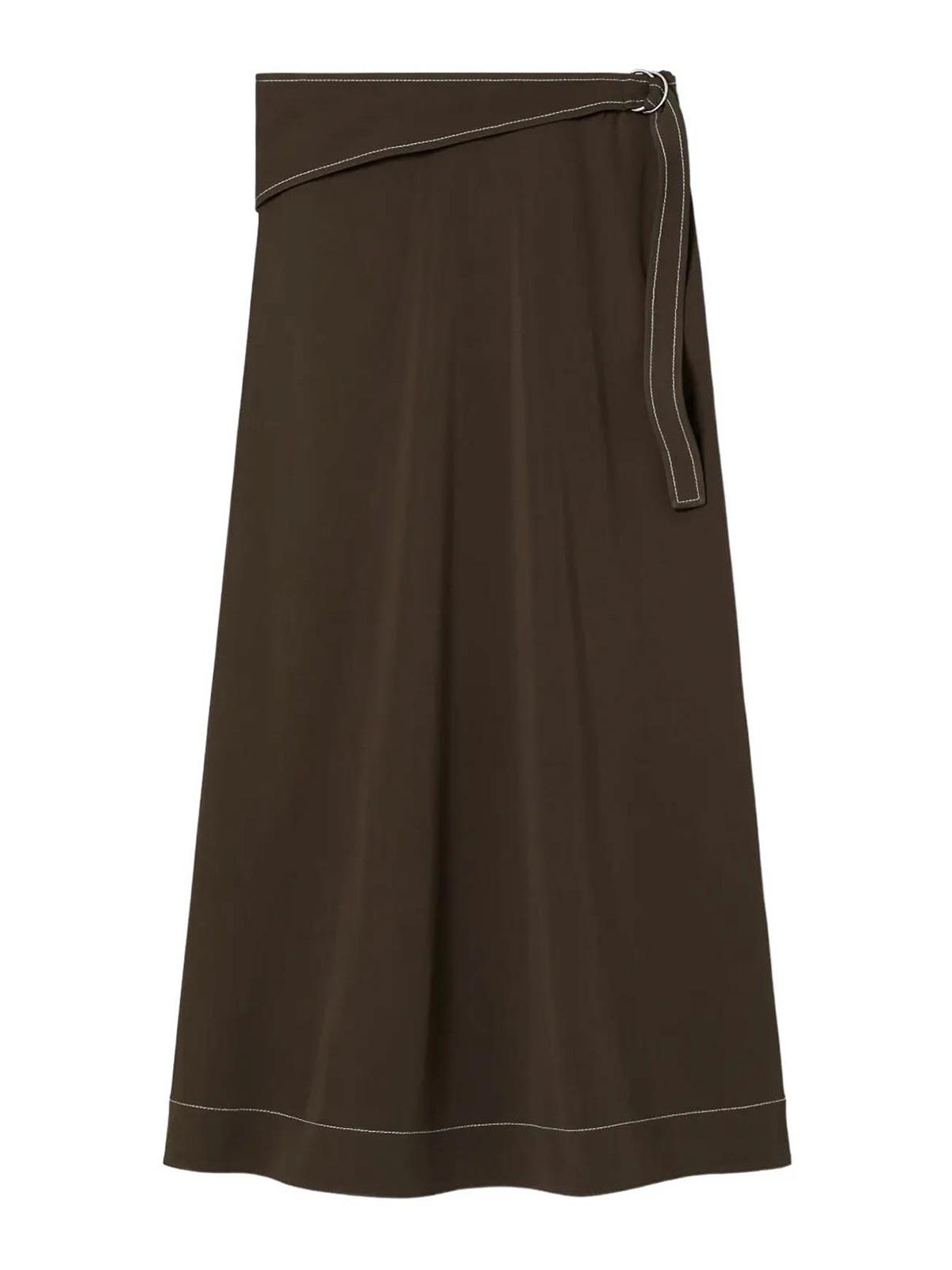 Wrap design, decorative stitching, adjustable waistband, hidden side zip closure, flowing silhouette, ankle length. composition 100% viscose