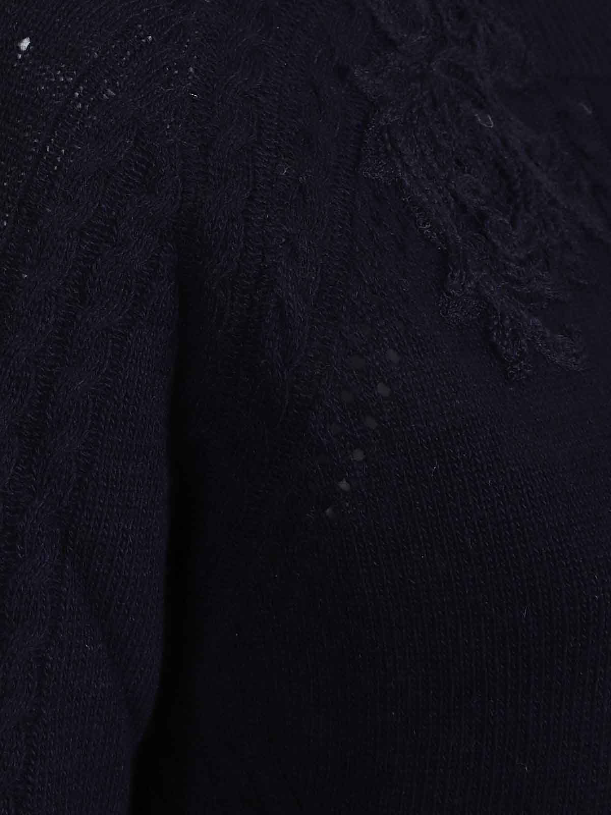Ermanno Scervino wool blend sweater, high neck, long sleeves, ribbed elastic trim, featuring a ribbed knit alternating with braids and a collar embellished with tone-on-tone floral lace.
