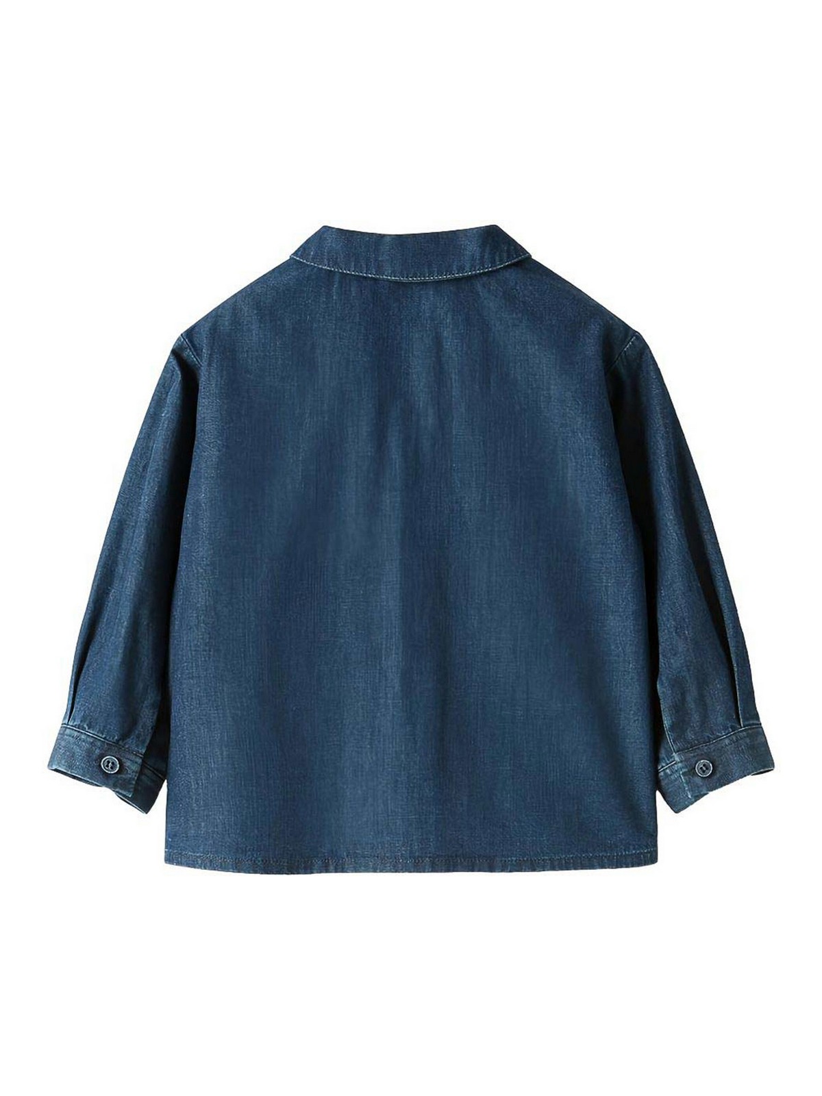 Long sleeve shirt features blue peter collar, button pan, long sleeves, button cuffs