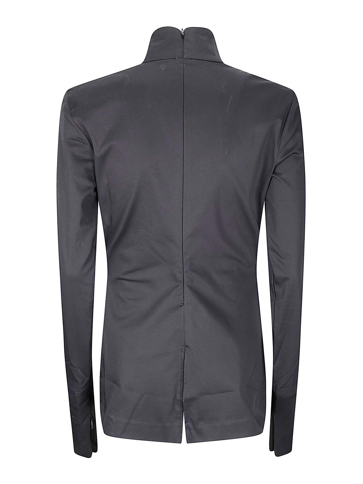 Long-sleeved poplin shirt, mock neck, back zip closure, slim fit.