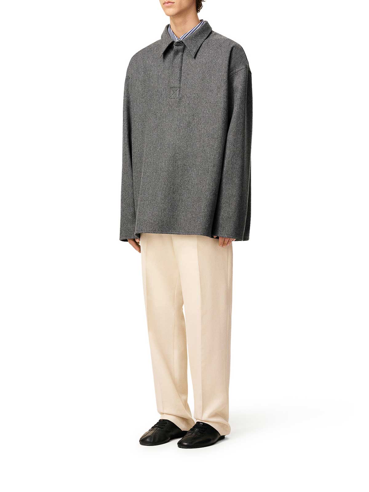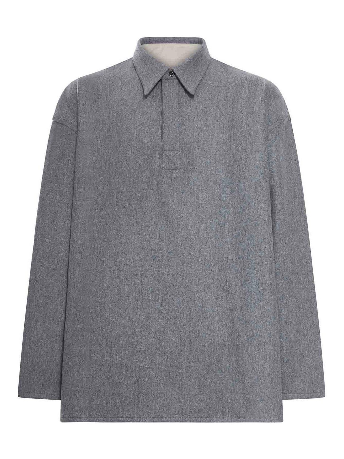 Long, sleeved flannel polo shirt, oversized fit, classic collar with hidden button placket, long sleeves, buttons, embossed ami de coeur logo under the collar on the center back, - colore grey