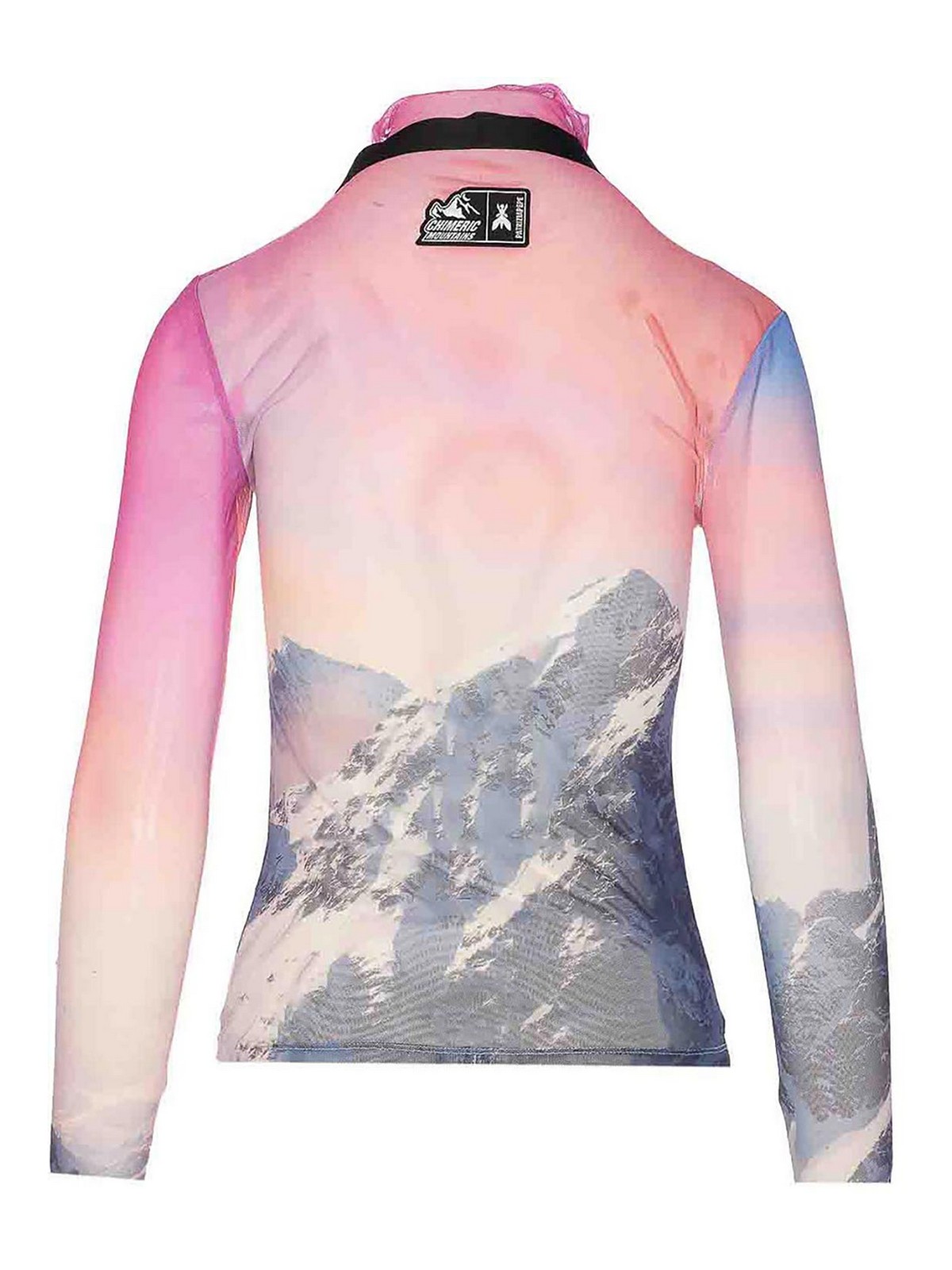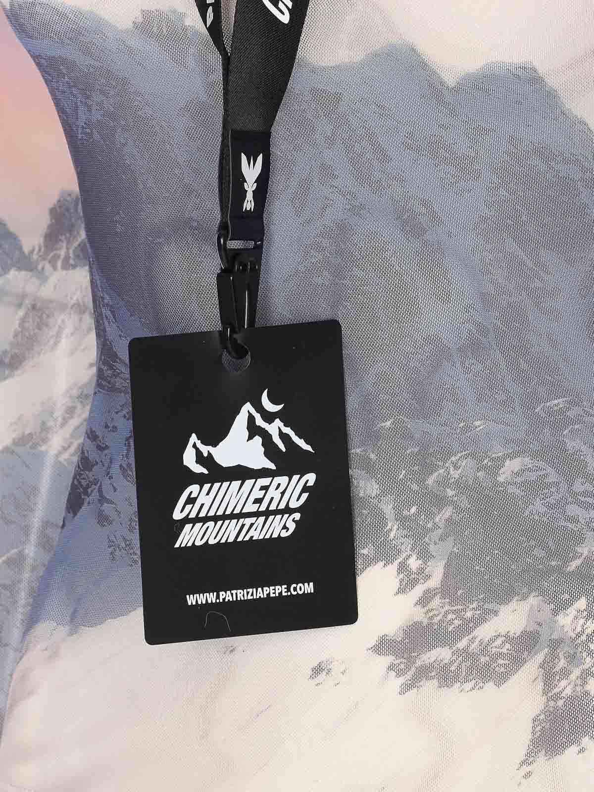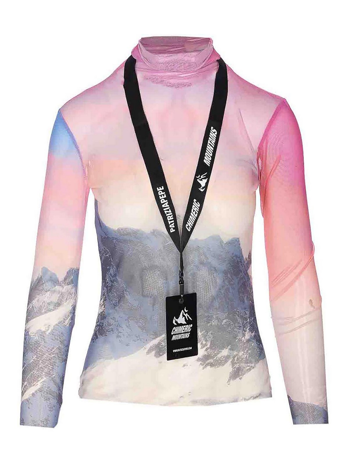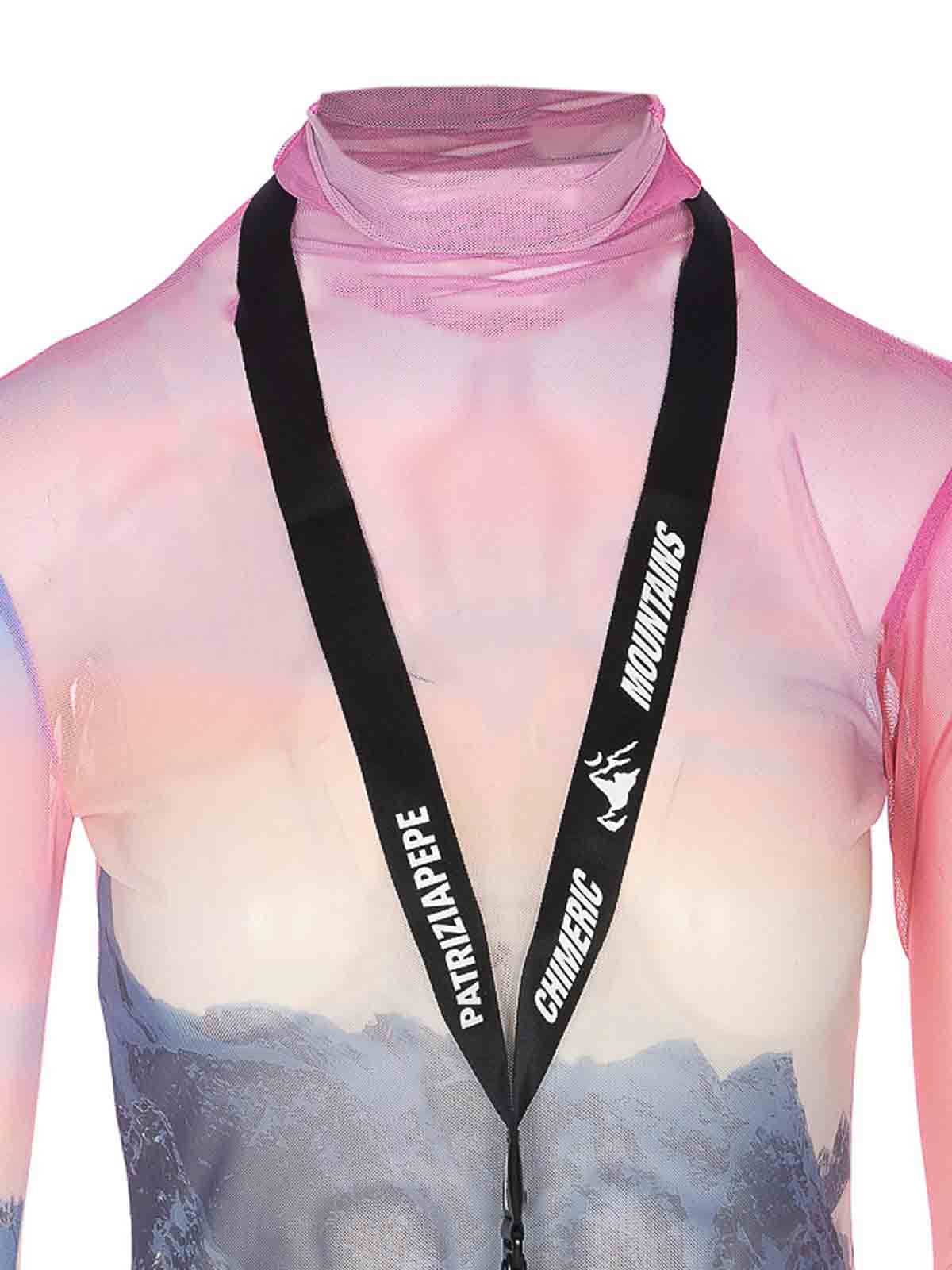 Patrizia pepe pink long sleeves top, transparent effect, high neck, long sleeves, application detail, printed