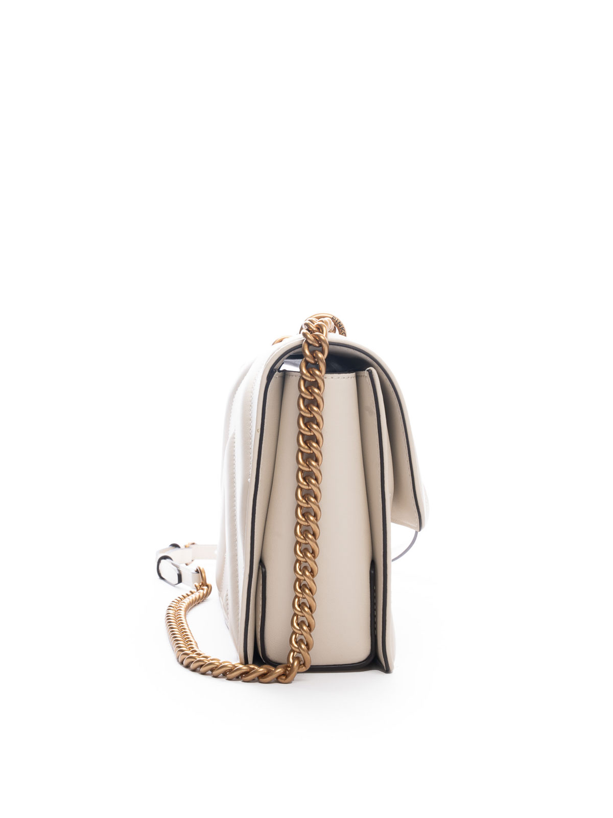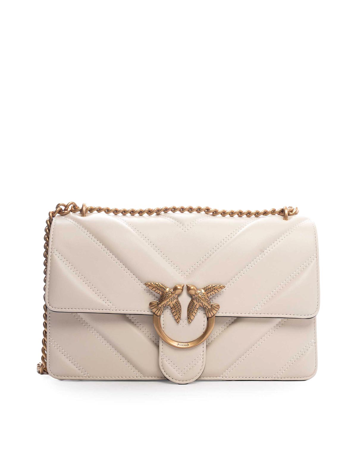 Nappa quilted flap with love birds buckle chain shoulder strap with adjustable shoulder strap interior zip pocket drill
