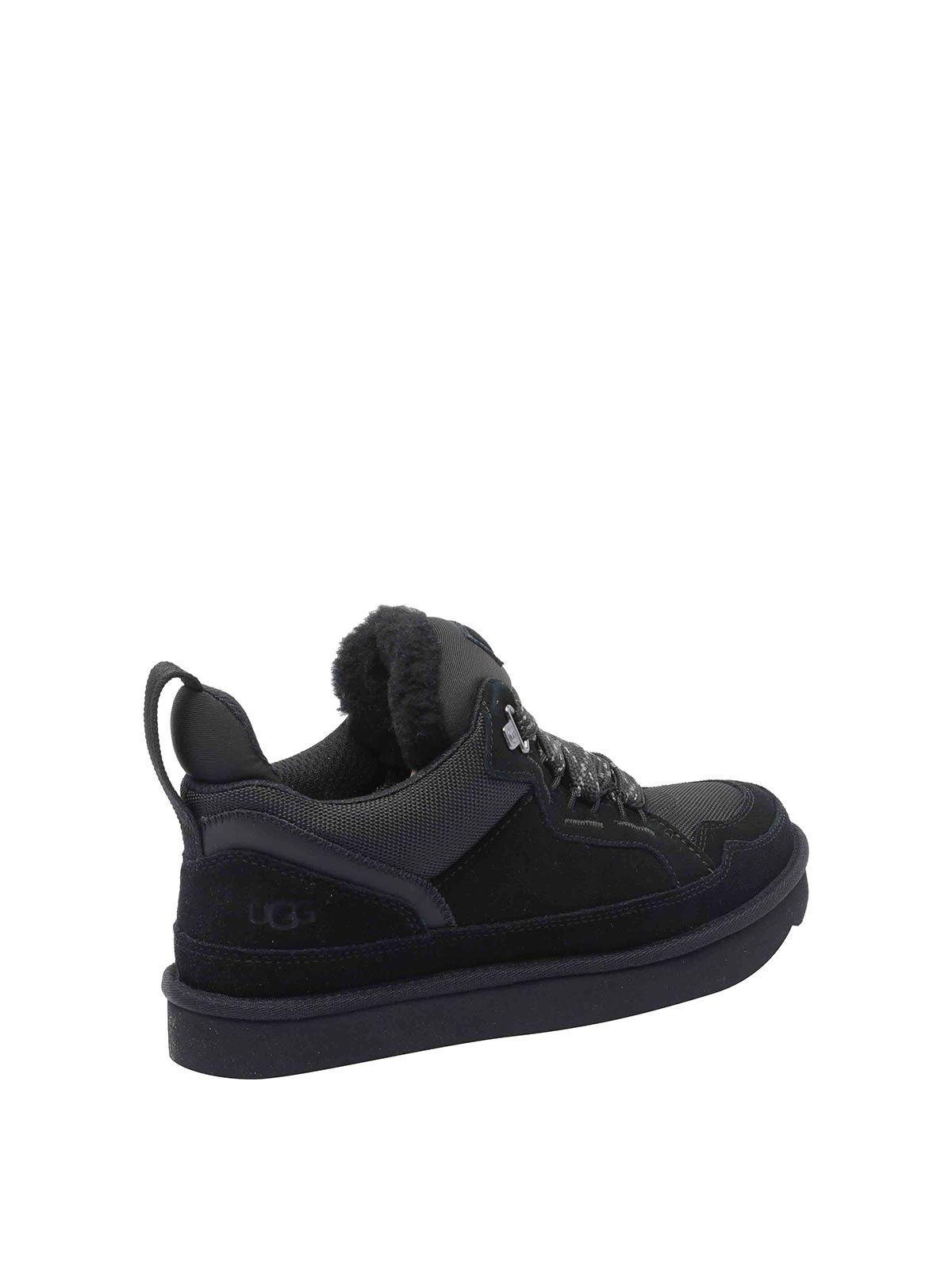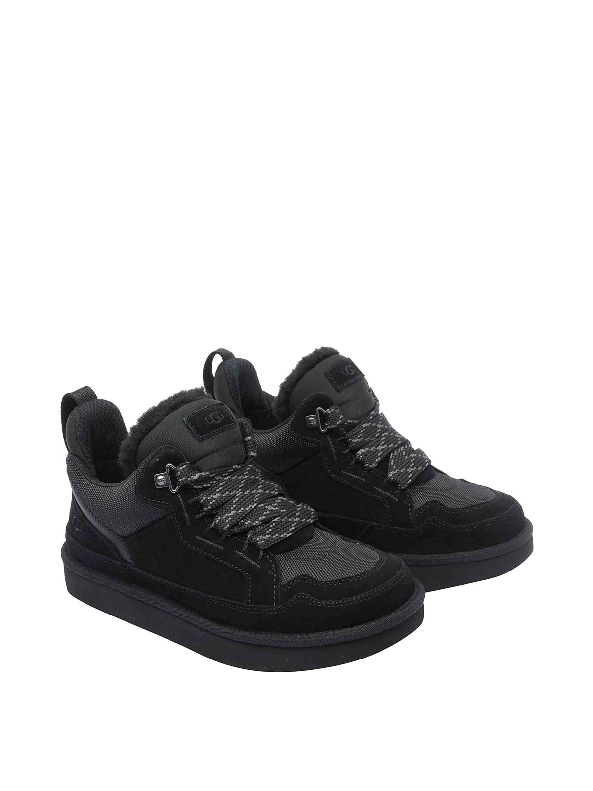 Ugg black lowmel sneakers, round toe, lateral tone on tone logo, laces closure, suede and wool upper